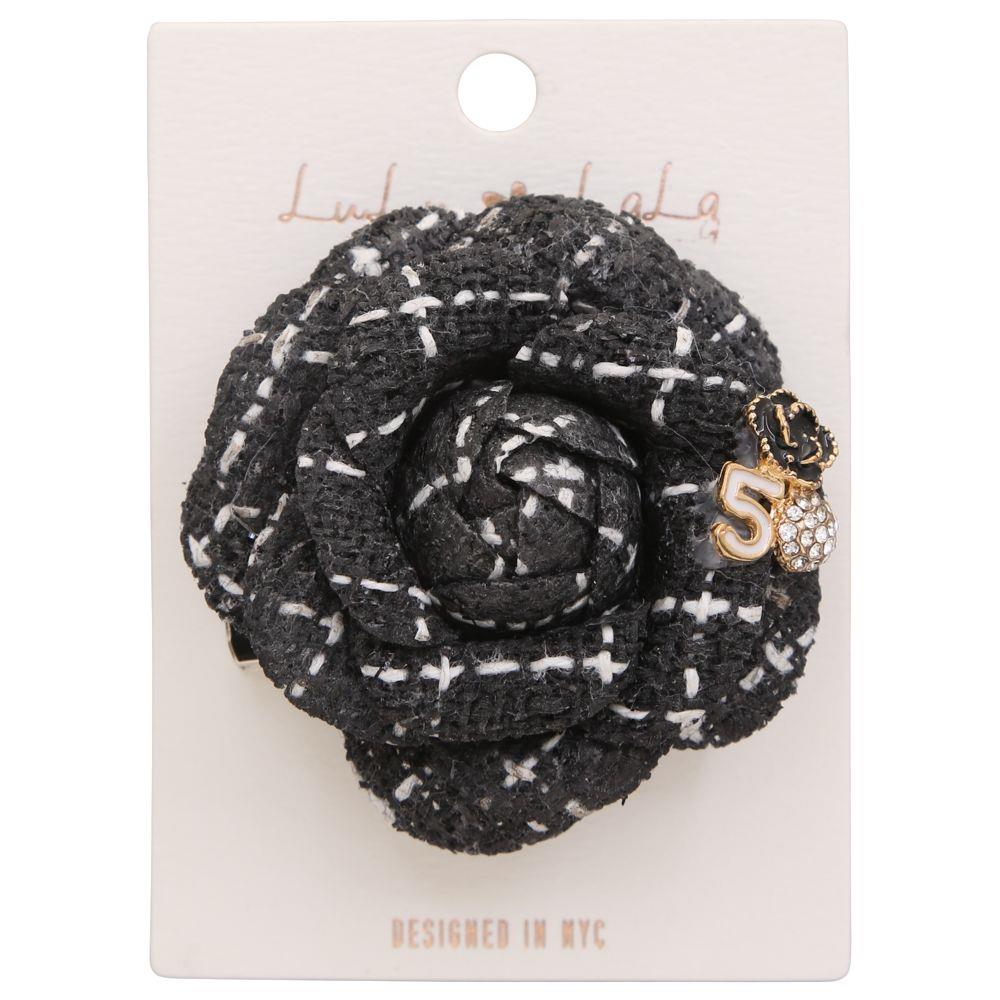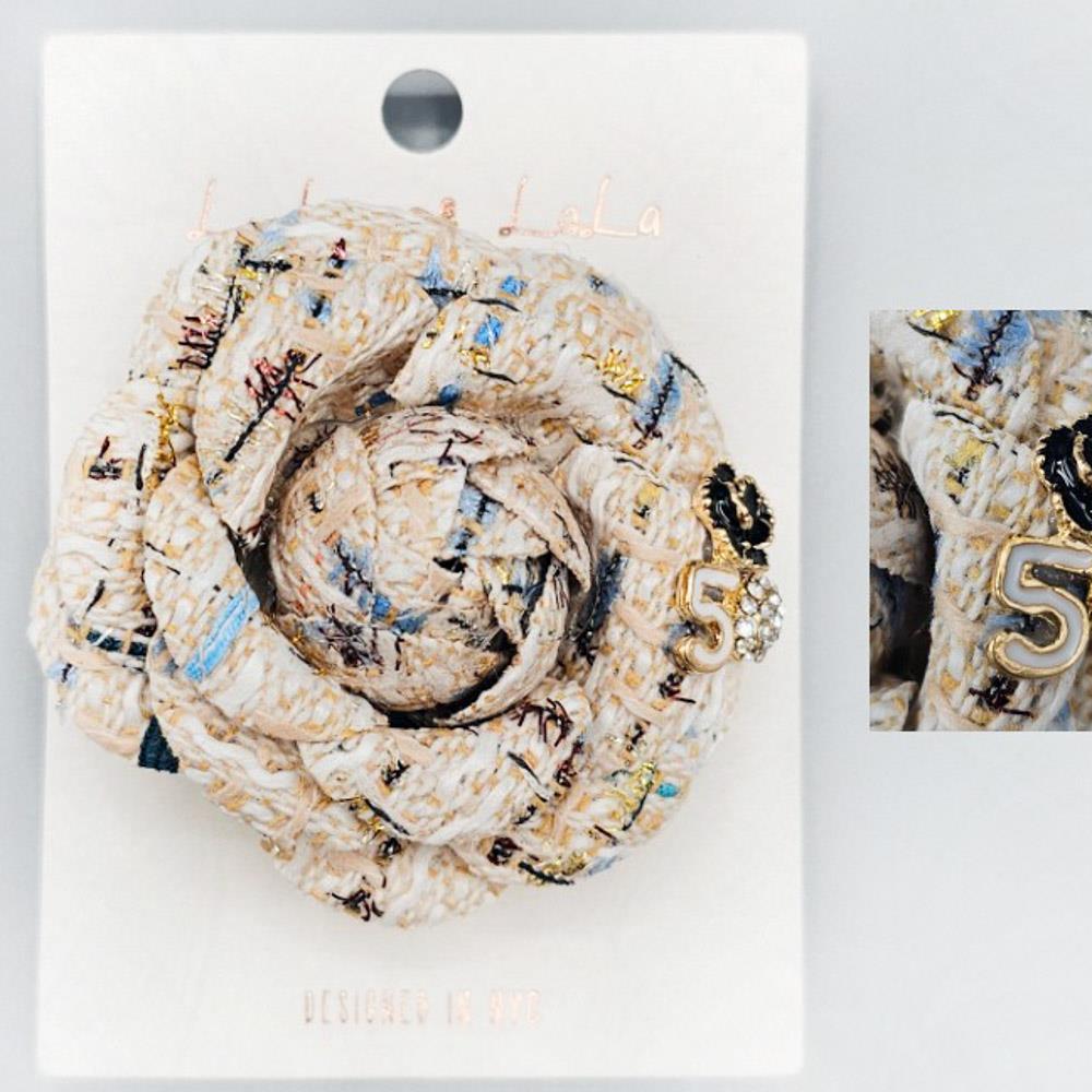 TWEED FABRIC METAL ROSE BROOCH PIN