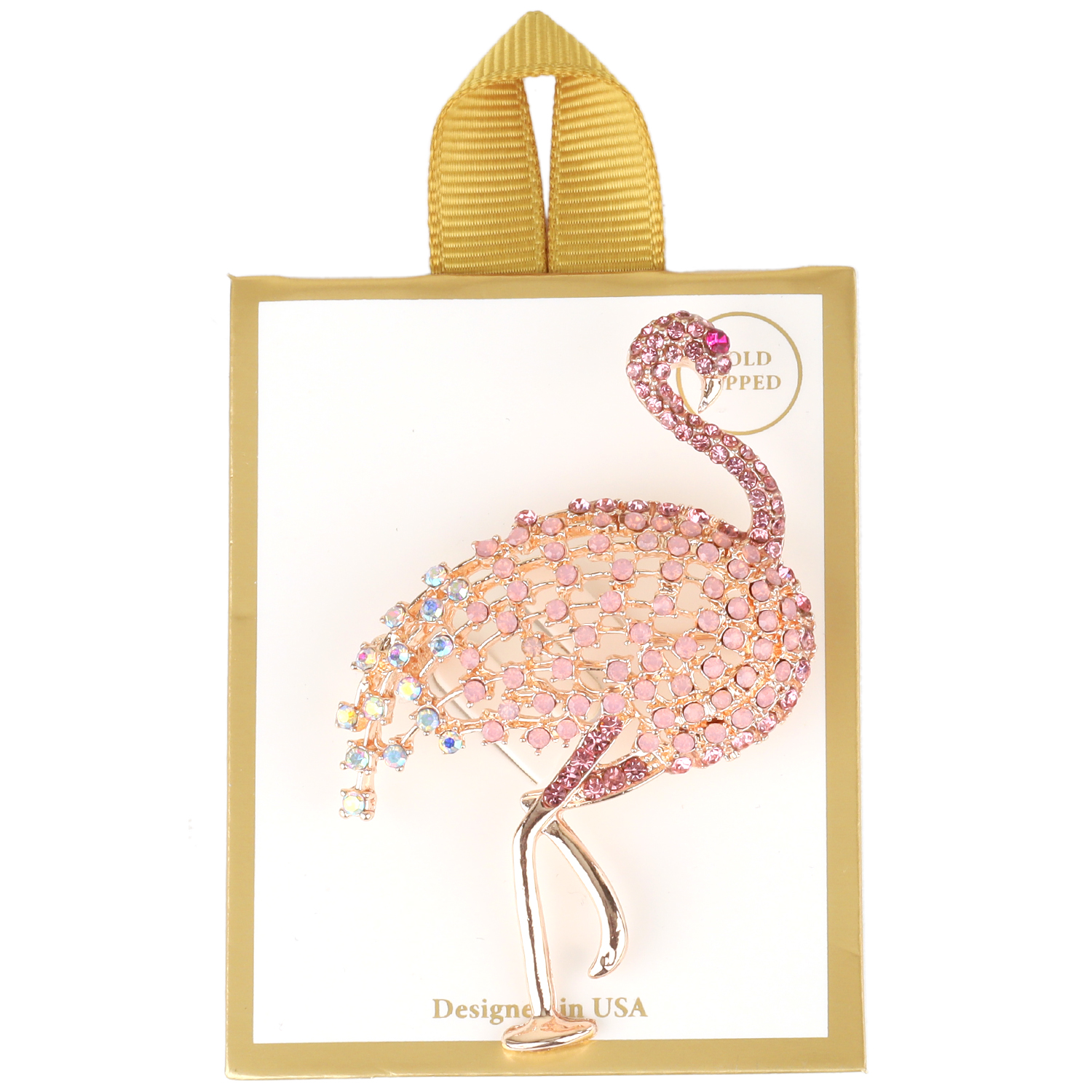 RHINESTONE EPOXY TROPICAL FLAMINGO BROOCH PIN