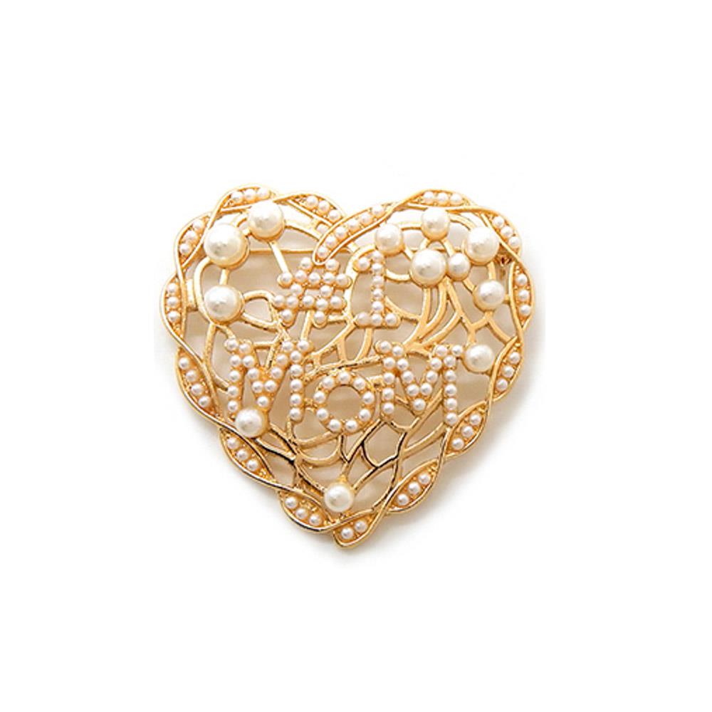 MOTHER DAY BROOCH DECORATED WITH A RED HEART, MINIATURE ROSES, AND CRYSTAL-EMBELLISHED TEXT