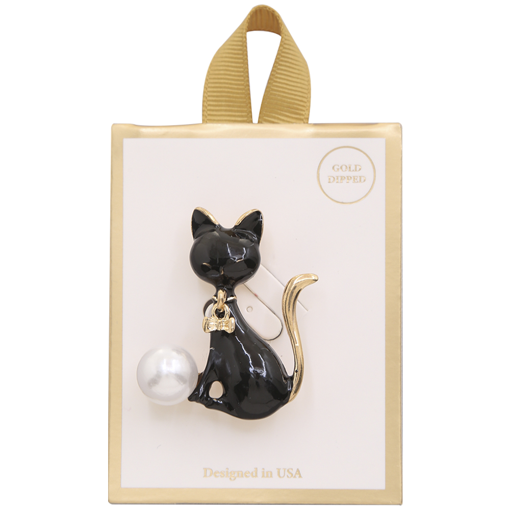 PEARL EPOXY CAT BROOCH PIN