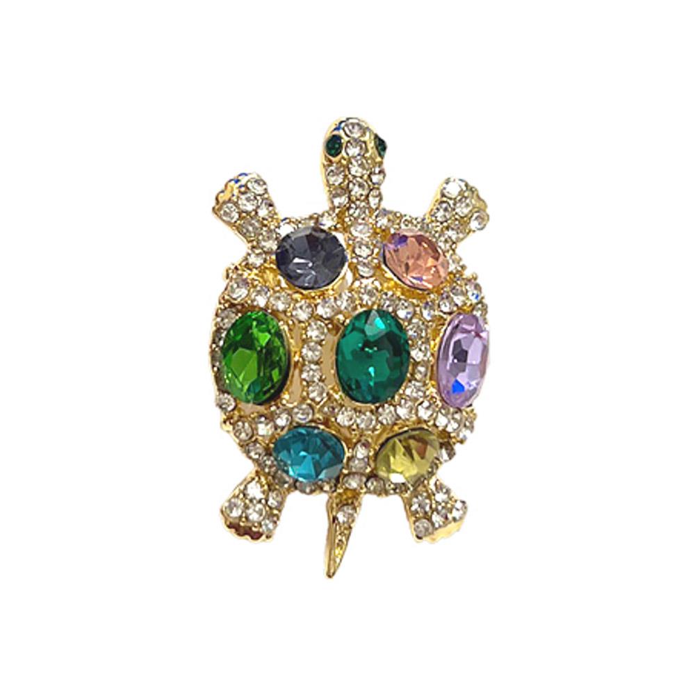 CRYSTAL STONE TURTLE BROOCH