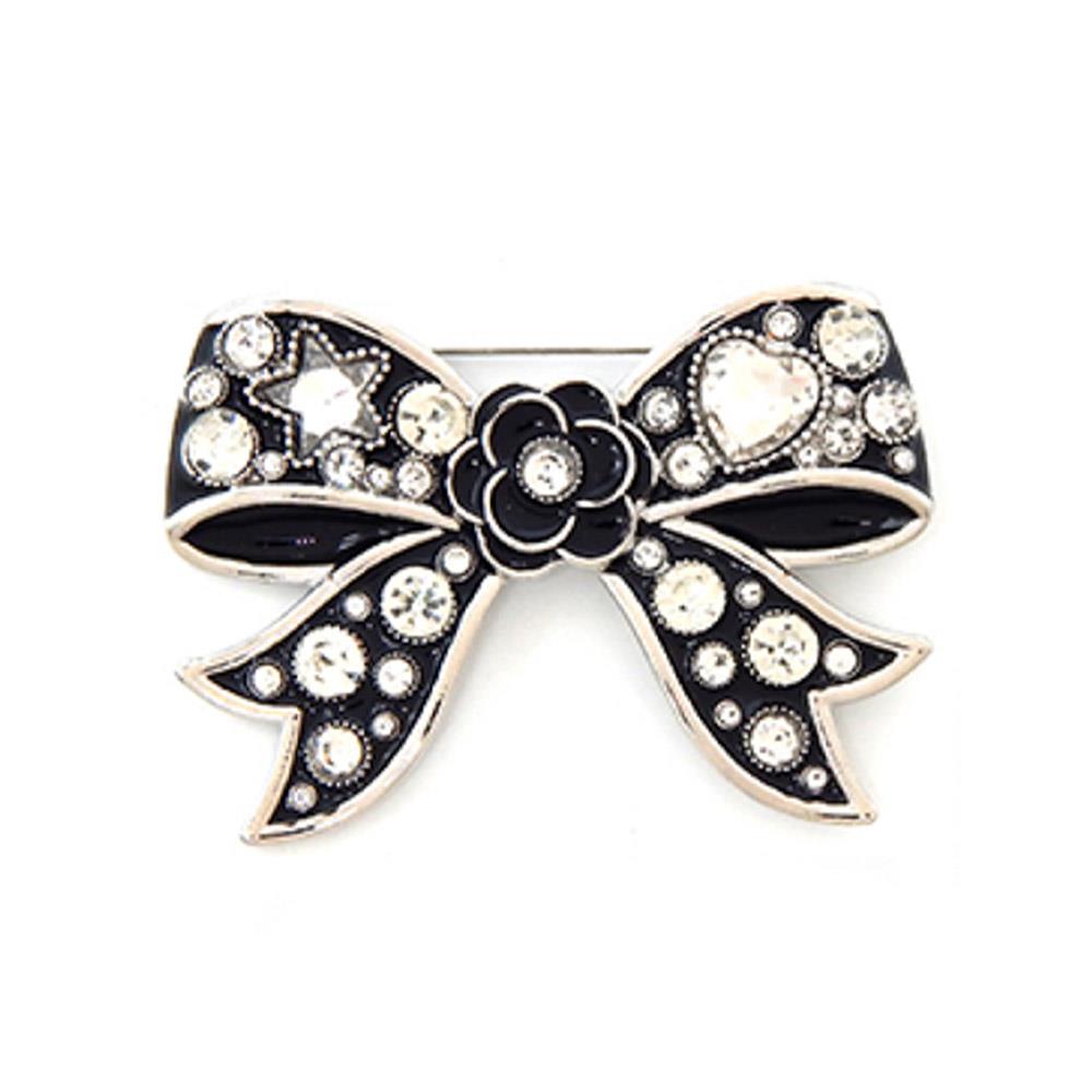 BOW BROOCH DECORATED, SPARKLING CRYSTALS, AND A CENTRAL FLOWER DETAIL