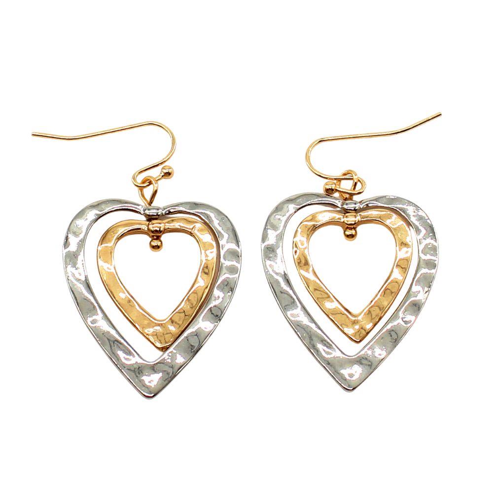 SOLID TEXTURED DOUBLE HEART METAL EARRING