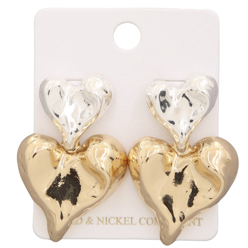 TWO TONE ORGANIC SHAPE METAL EARRING