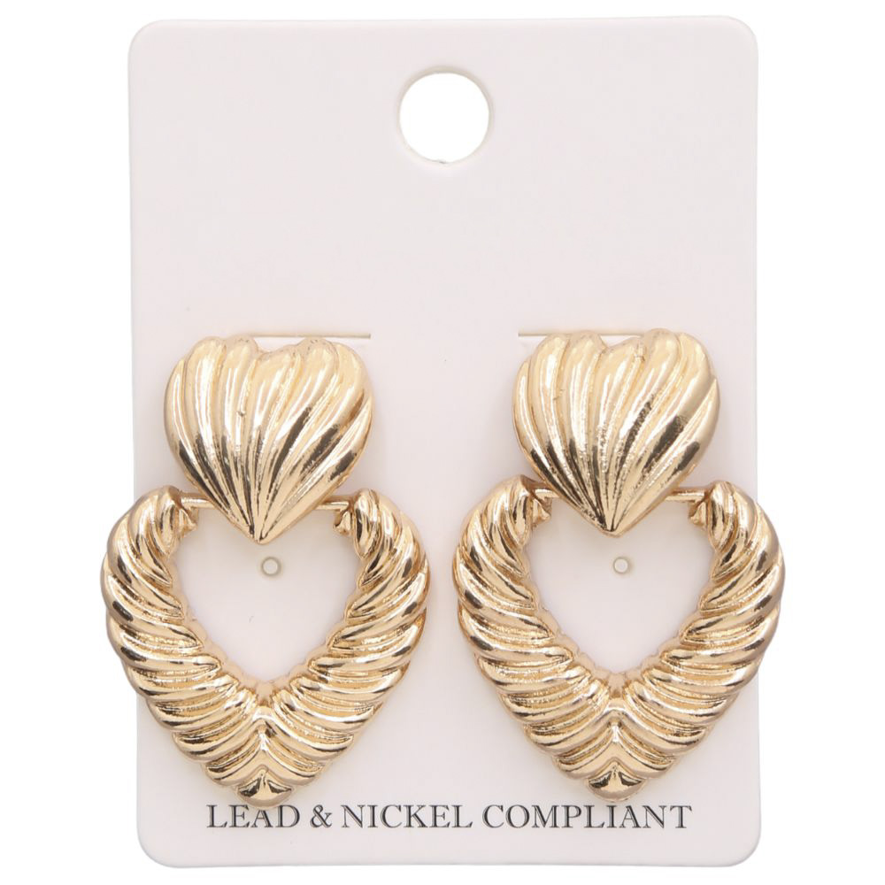 SDJ ROUND HEART LINK METAL DANGLE EARRING