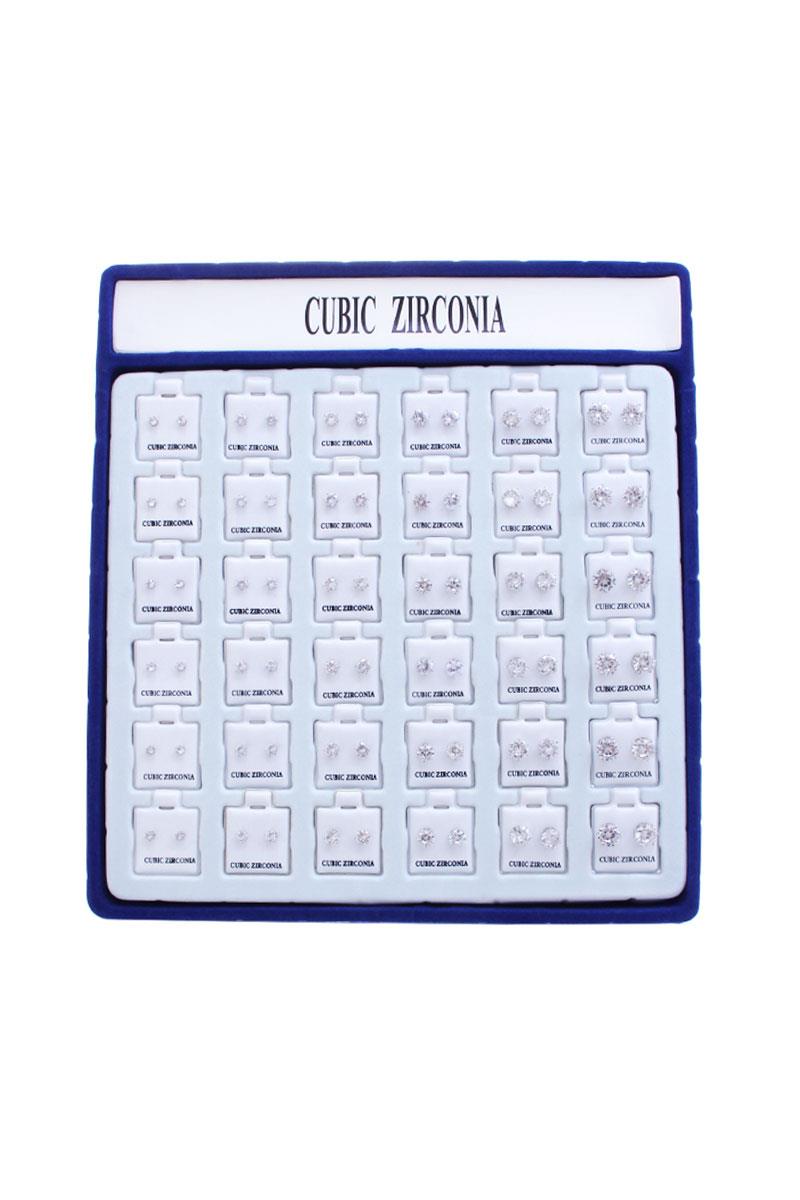 CUBIC ZIRCONIA ROUND STUD EARRING - 36 PCS.