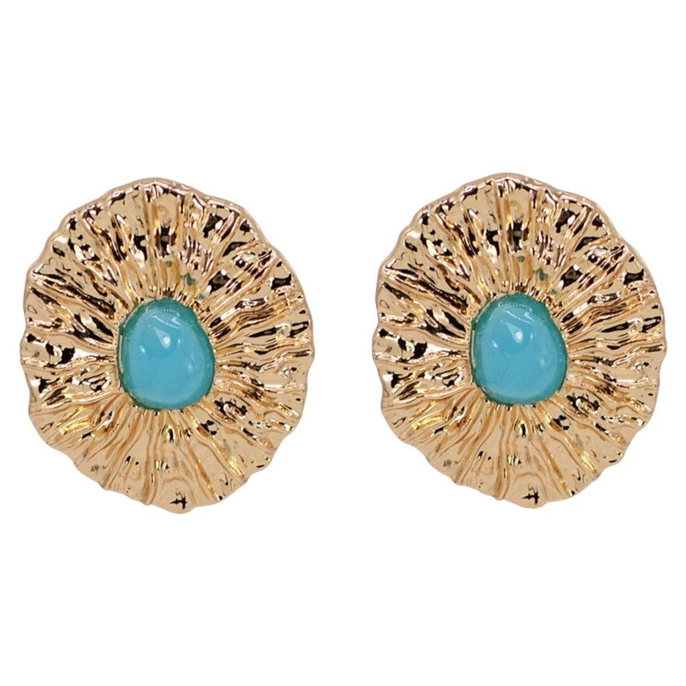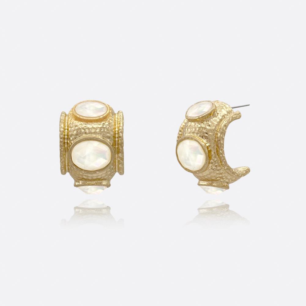 FACETED STONE BOLD OVAL STUD EARRING