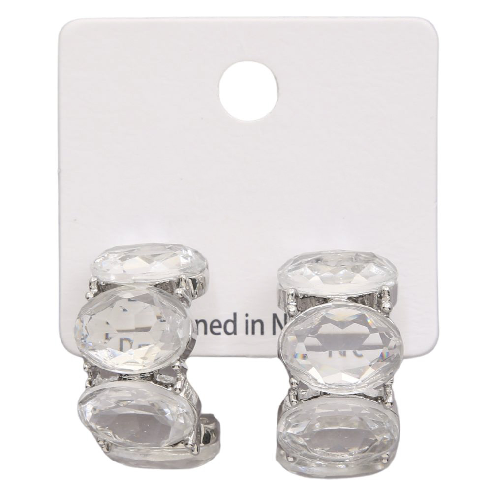 OVAL CRYSTAL OPEN HOOP EARRING