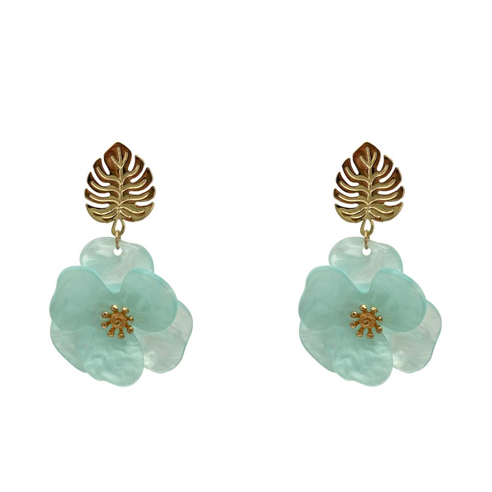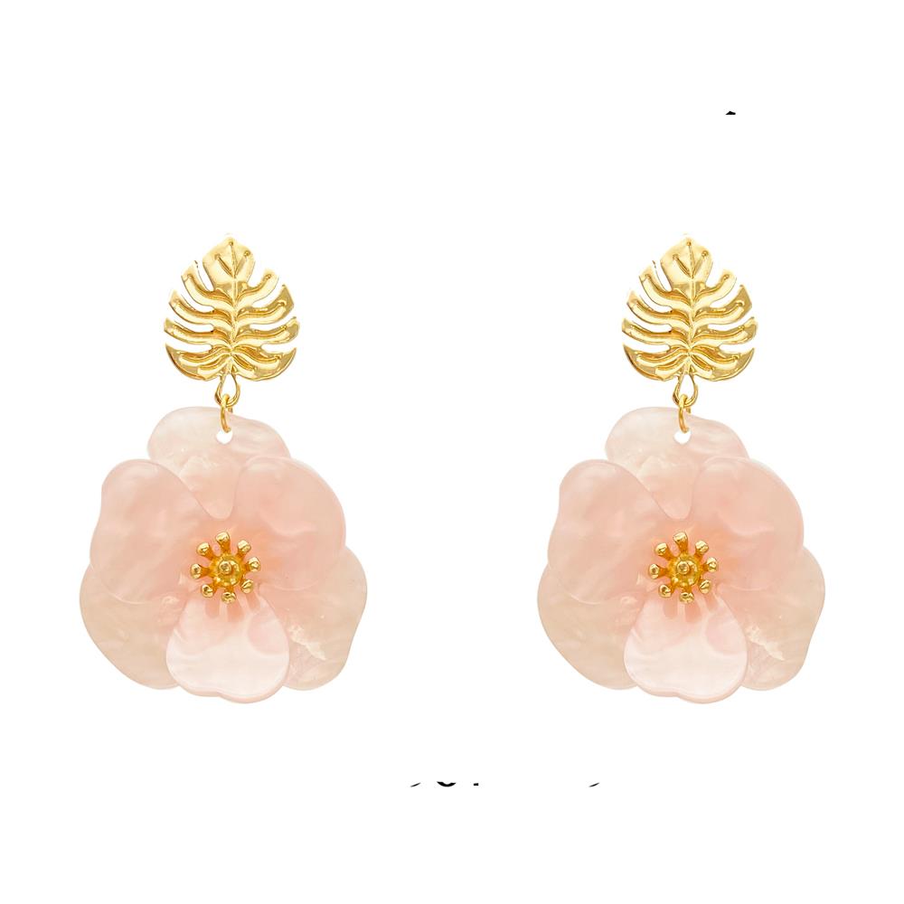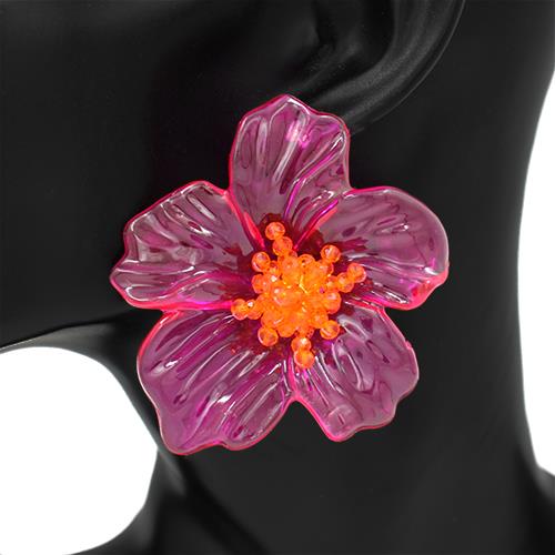 RESIN BEADED CENTER BOLD FLOWER EARRING