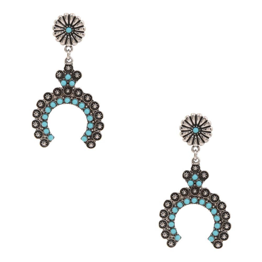 WESTERN TURQUOISE BEAD HORSESHOE DANGLE EARRING