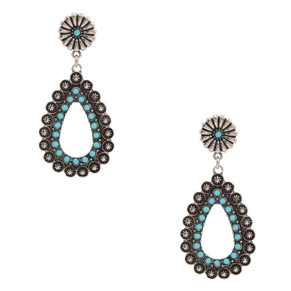 TURQUOISE BEAD TEARDROP METAL DANGLE EARRING