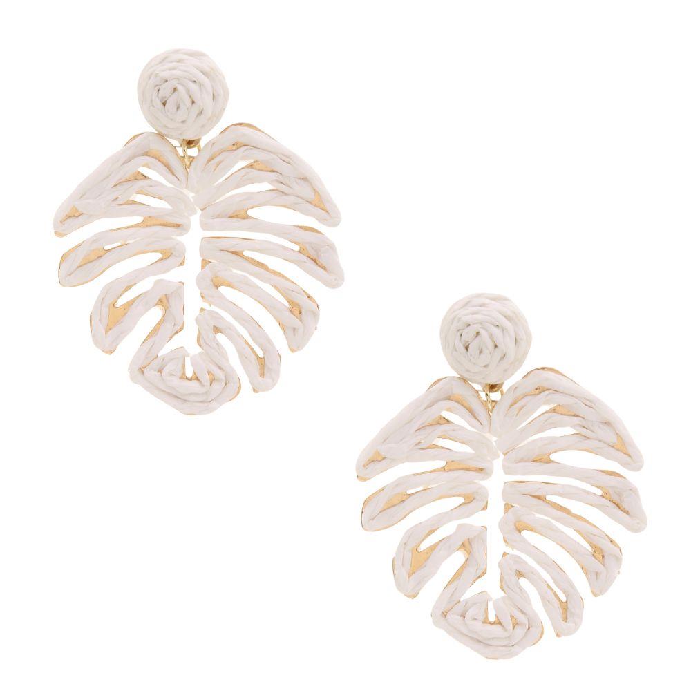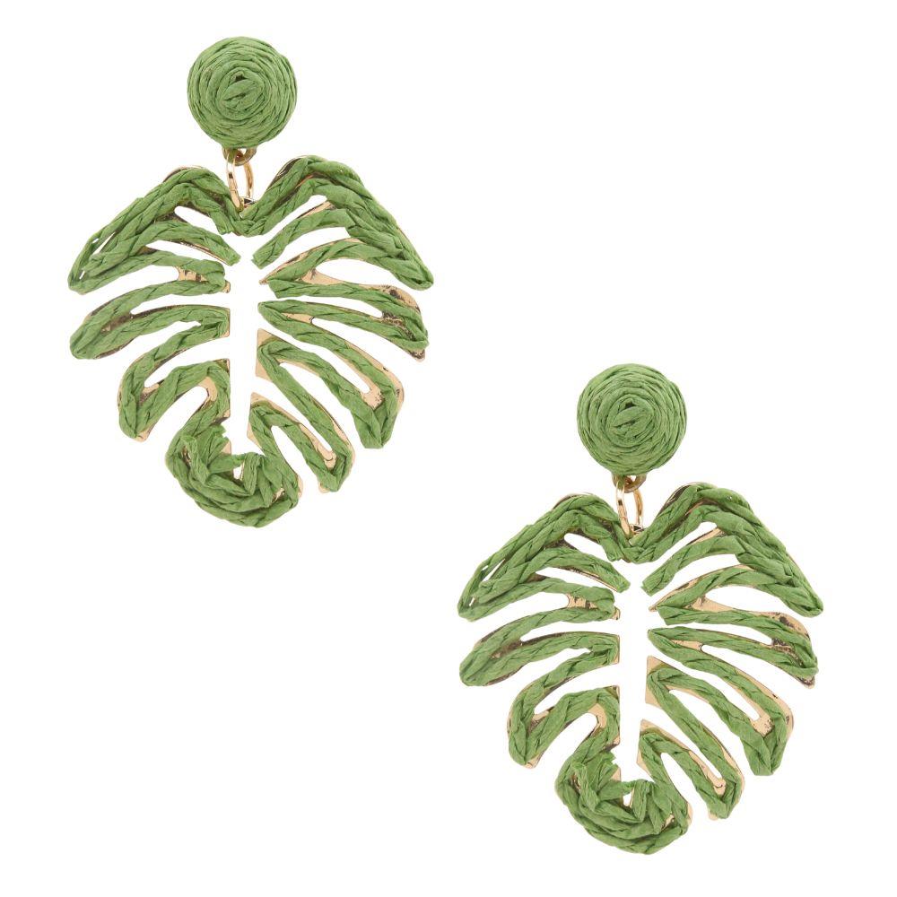 RAFFIA TROPICAL LEAF DANGLE EARRING