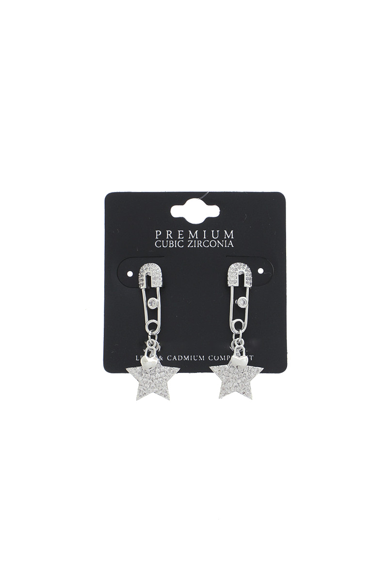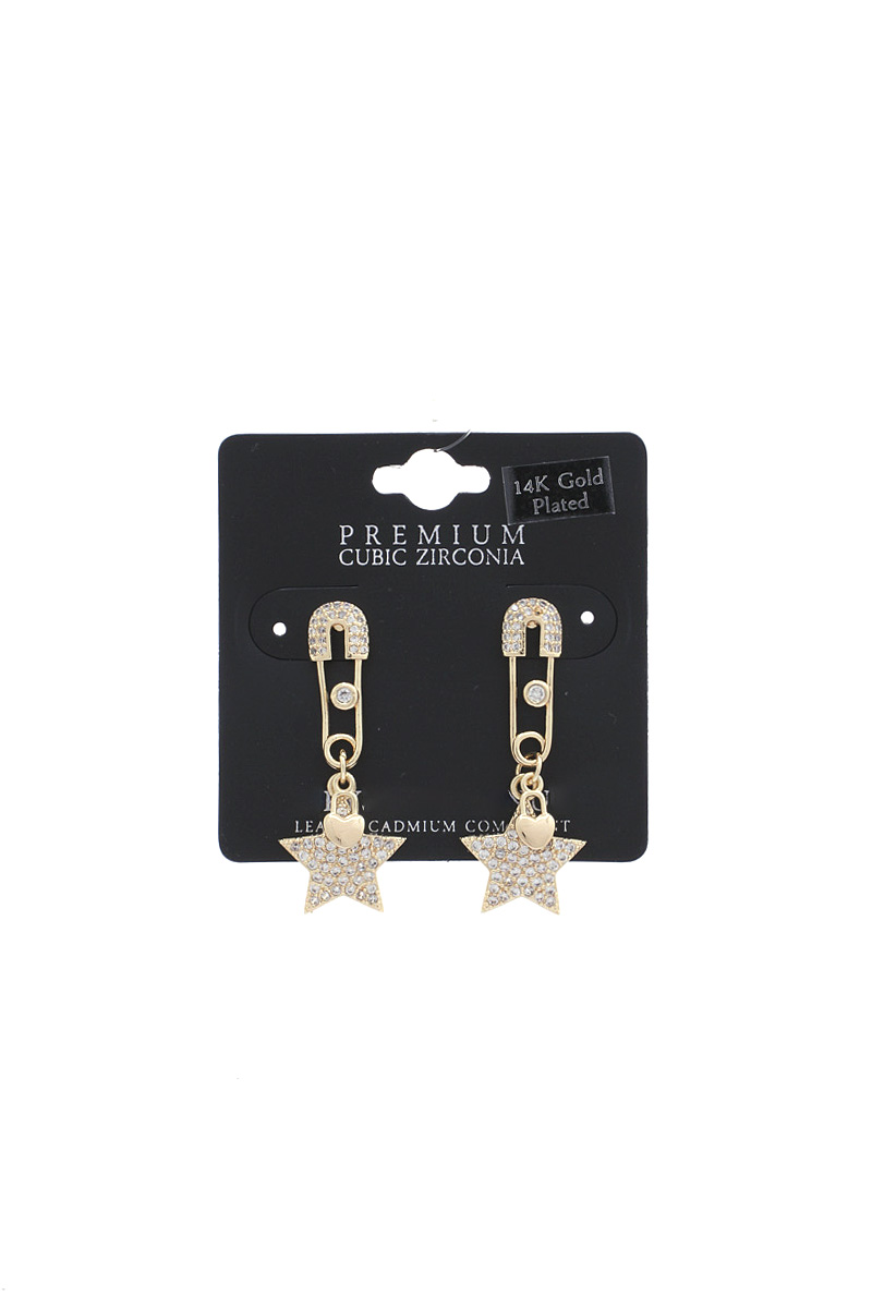 STAR CHARM SAFETY PIN SHAPE 14K GOLD PLATED EARRING