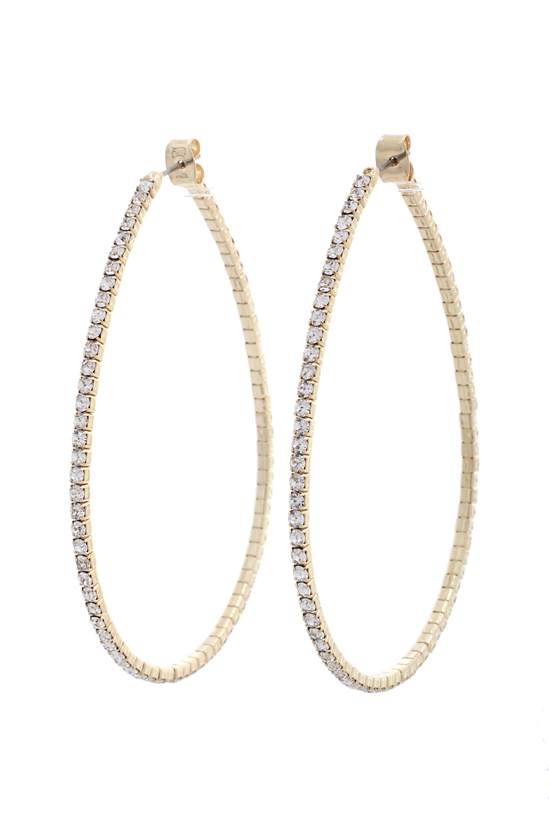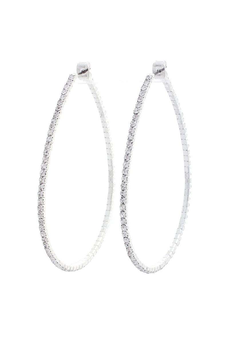 LONG OVAL RHINESTONE EDGE HOOP EARRING