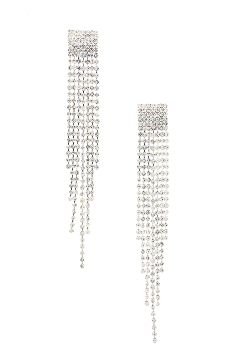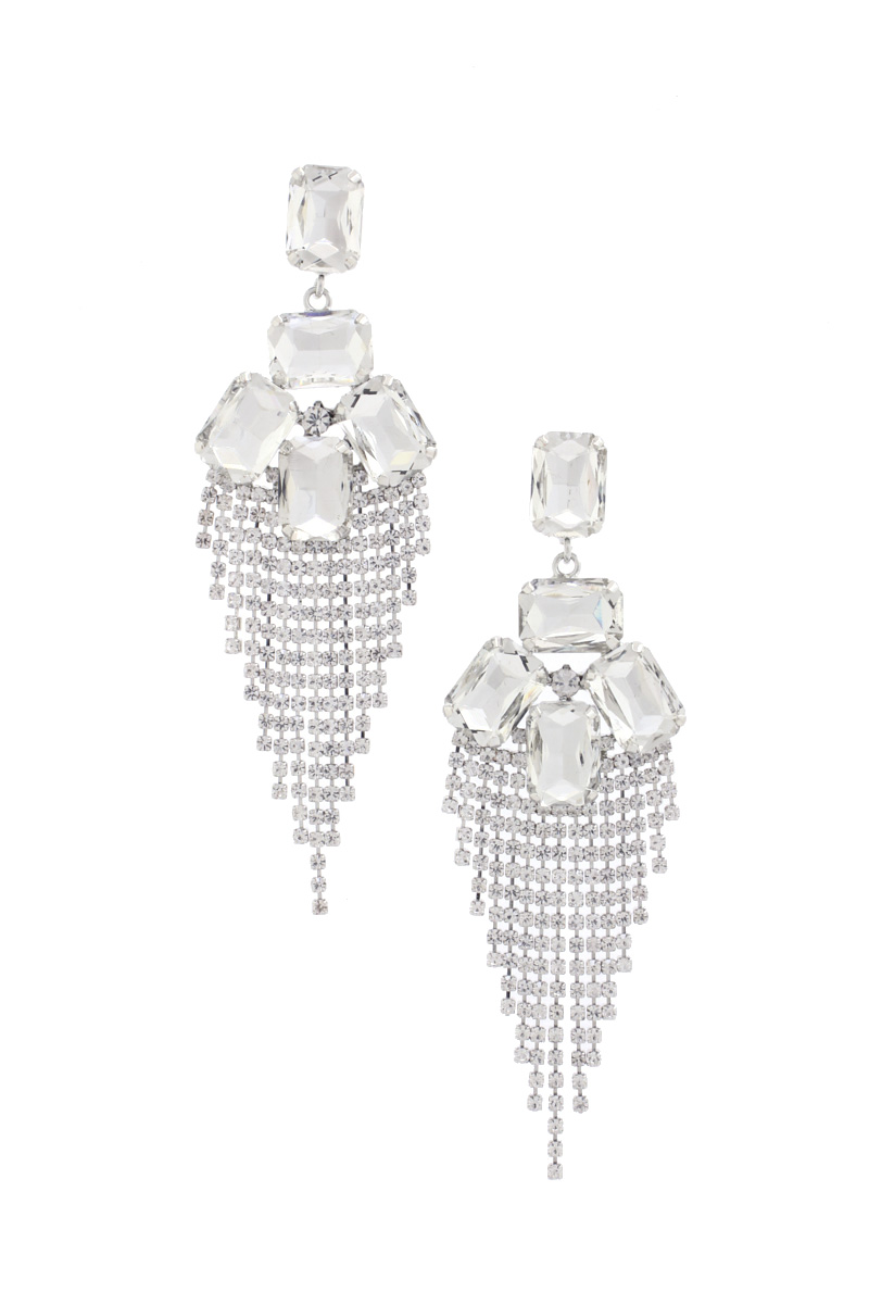 RHINESTONE RECTAGNLE FRINGE EARRING