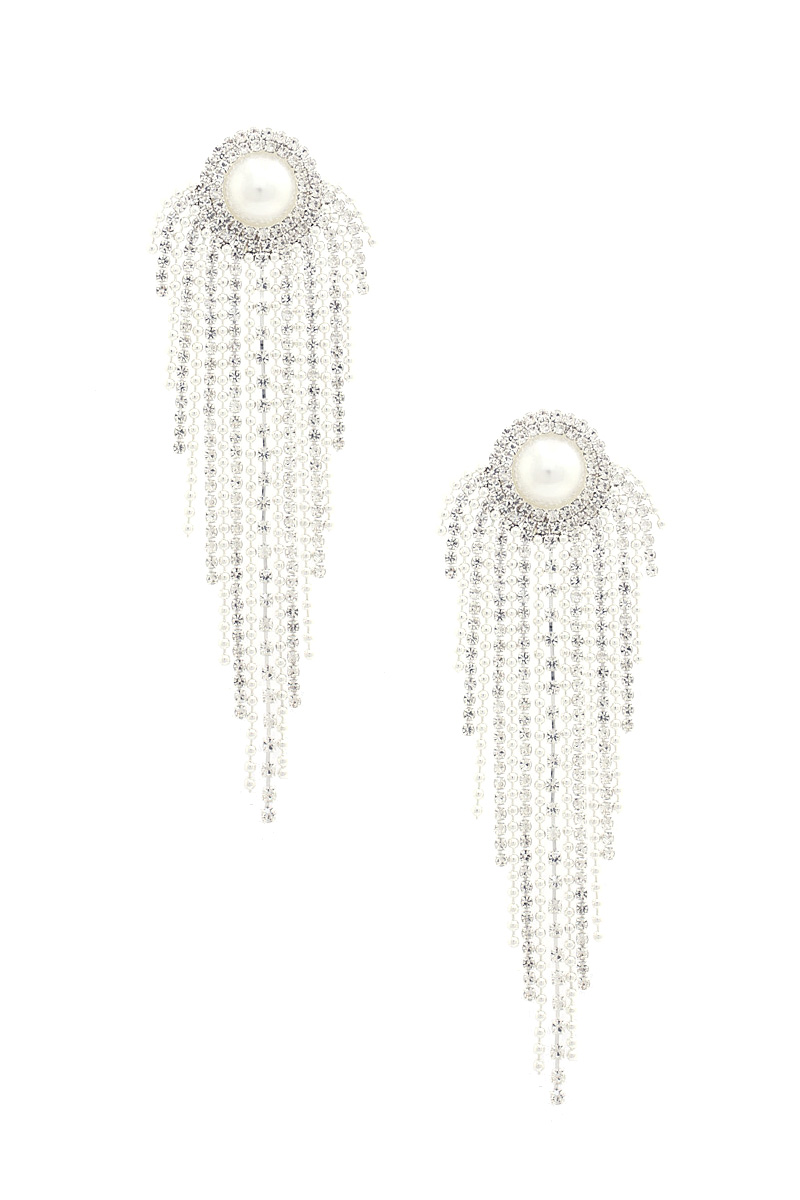 PEARL CENTER RHINESTONE STRAND EARRING