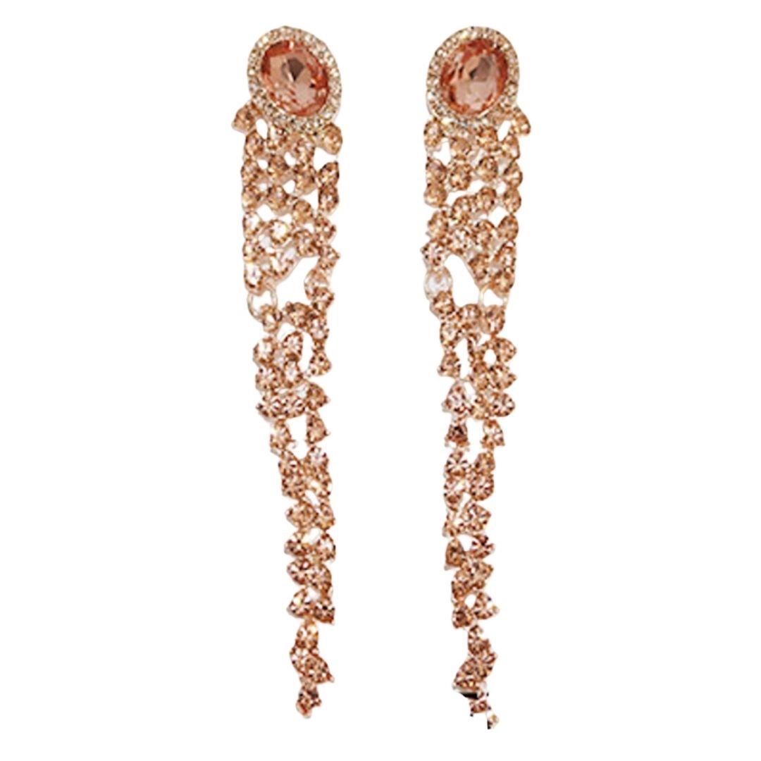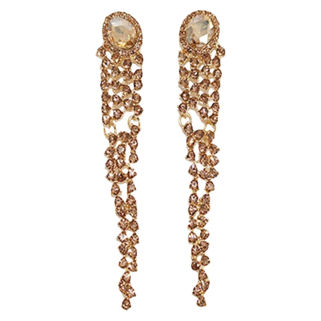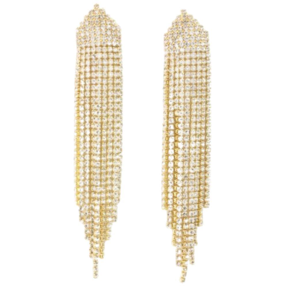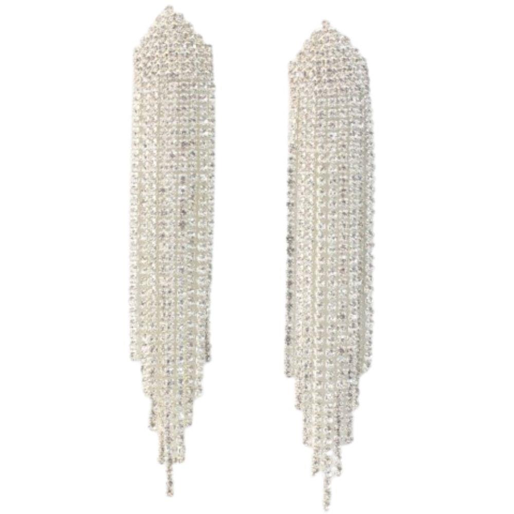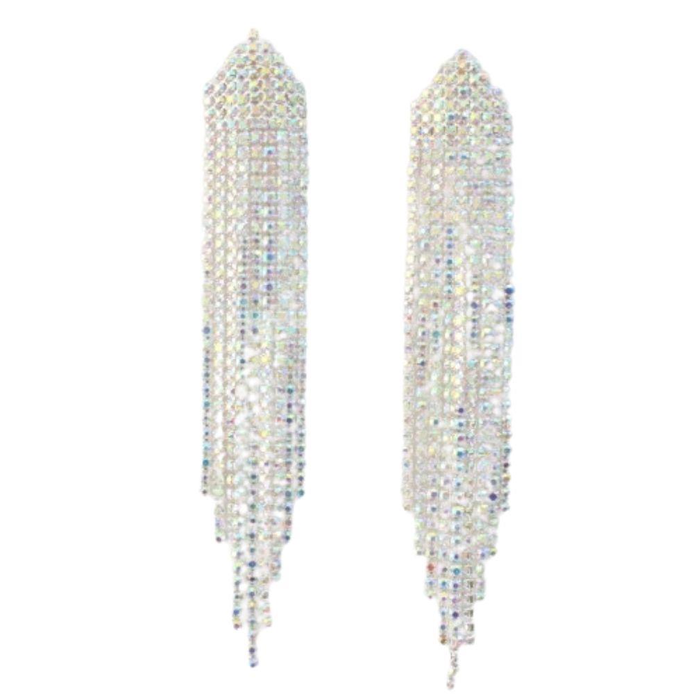 RHINESTONE TASSEL LONG FRINGE EARRING