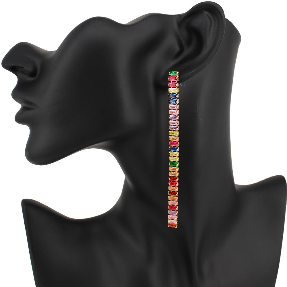 MULTI STONE LINEAR DANGLE EARRING