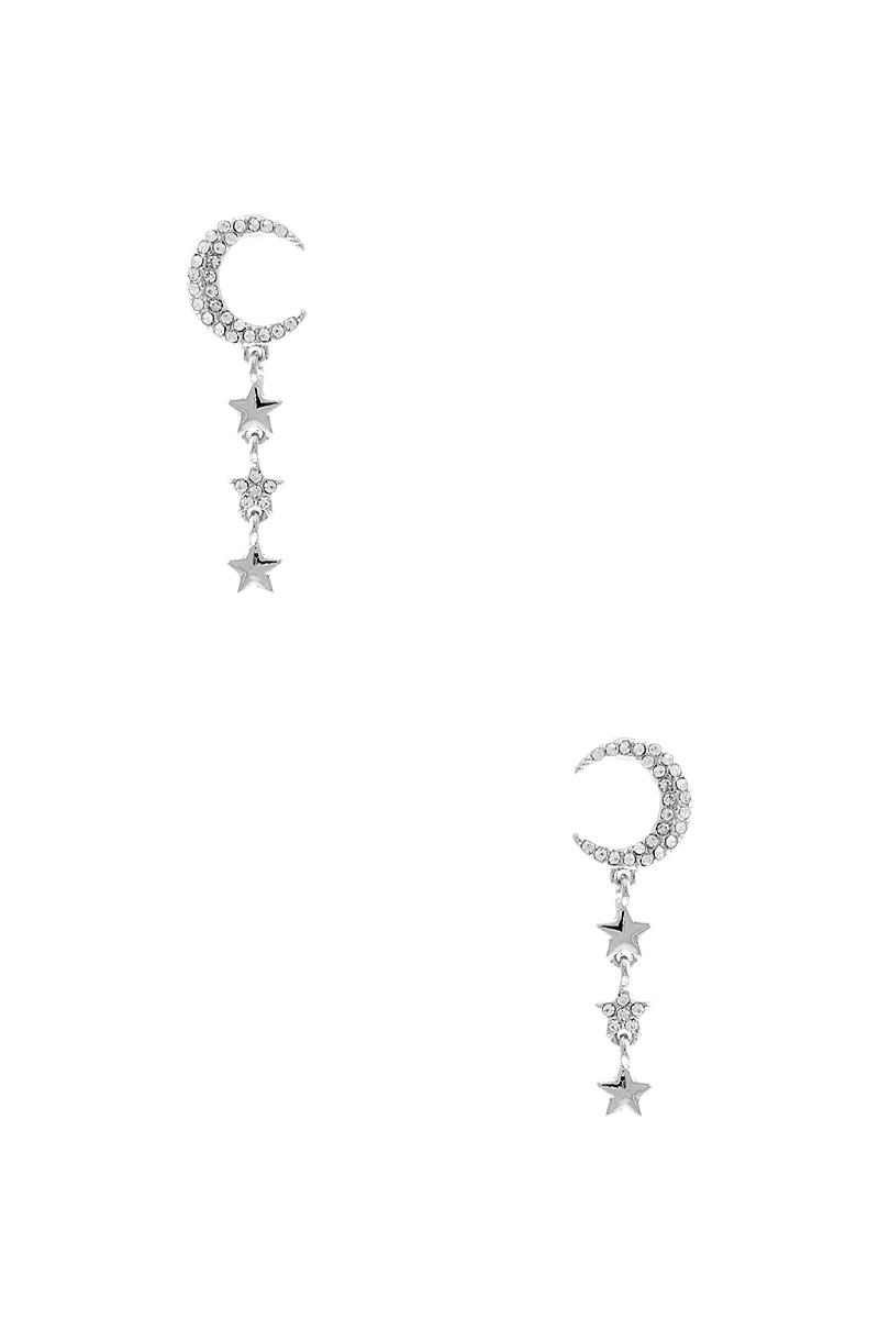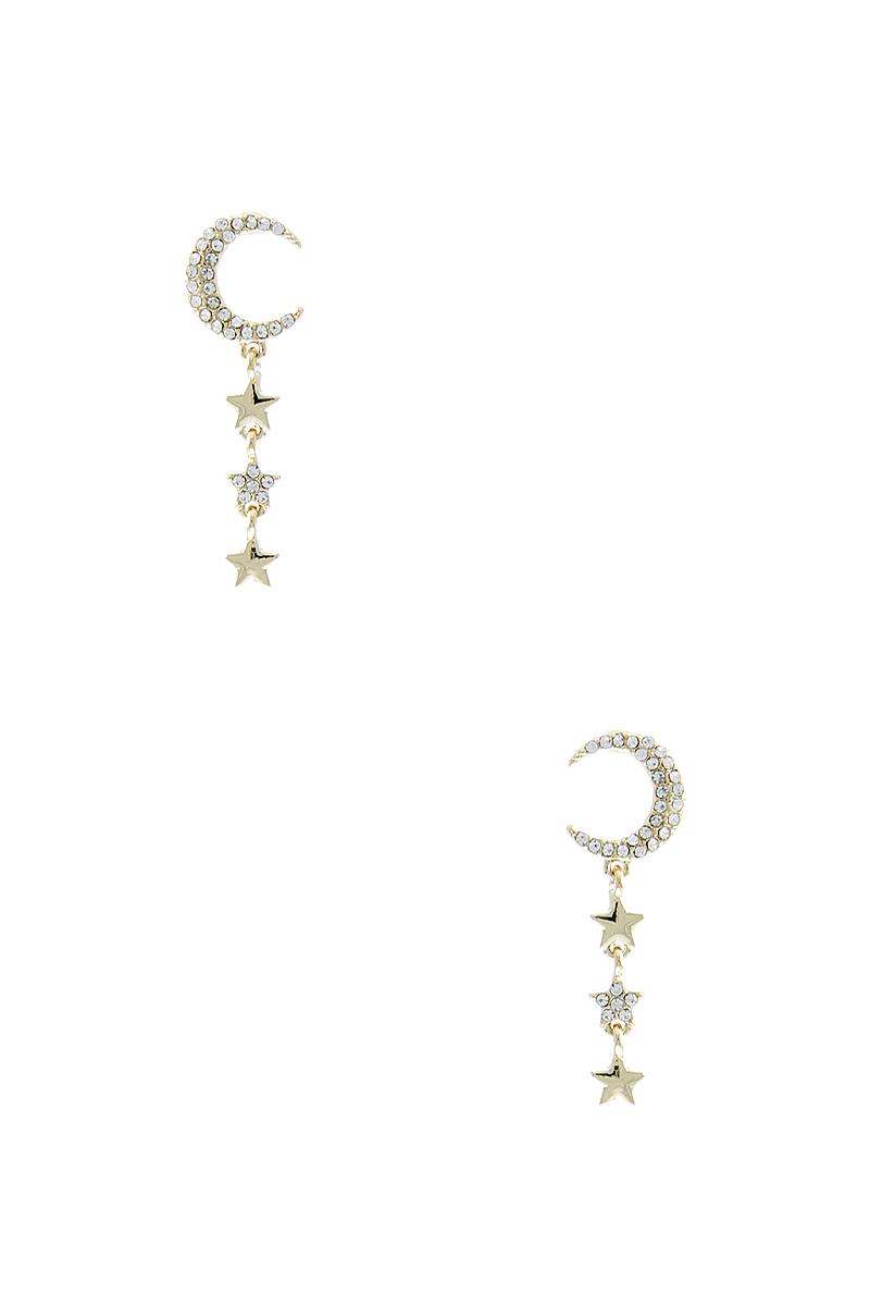 CRESCENT MOON 3 STAR DROP EARRING