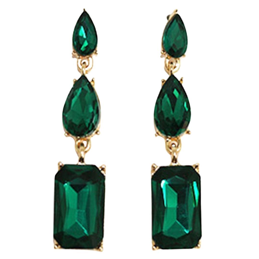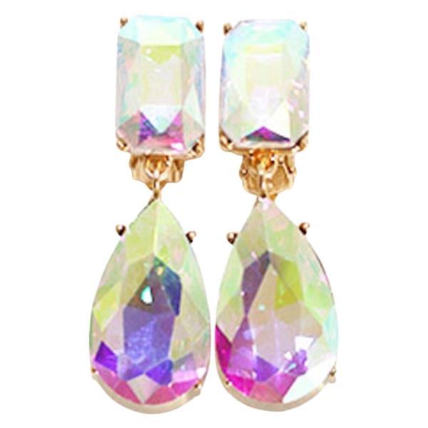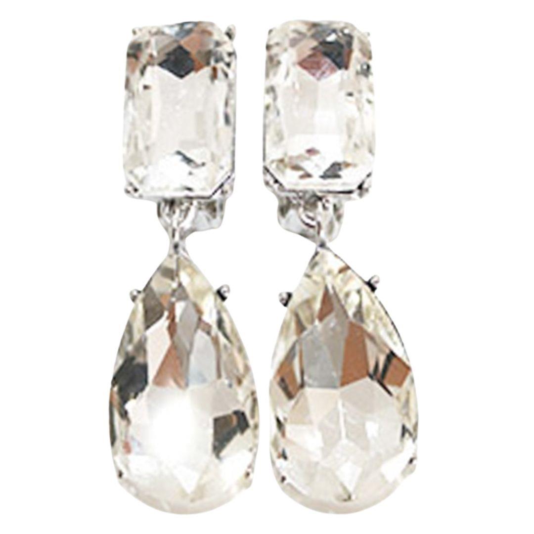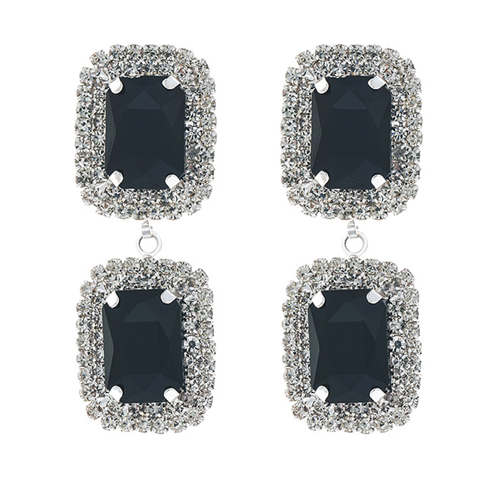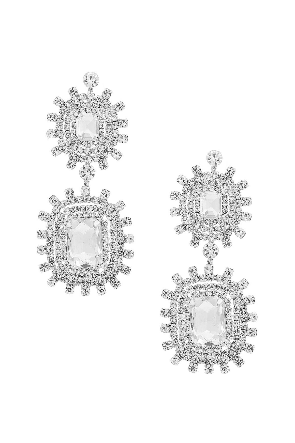 RHINESTONE CRYSTAL GEM RECTANGLE 2 DROP EARRING