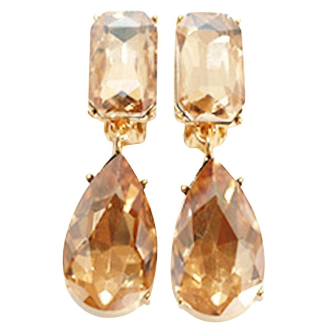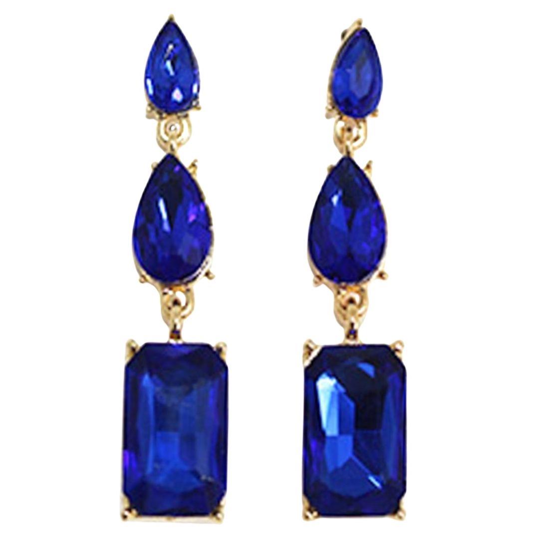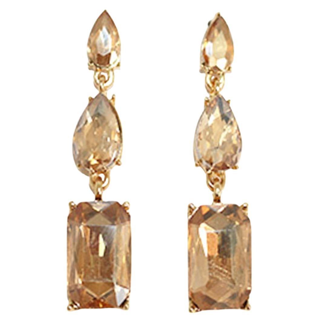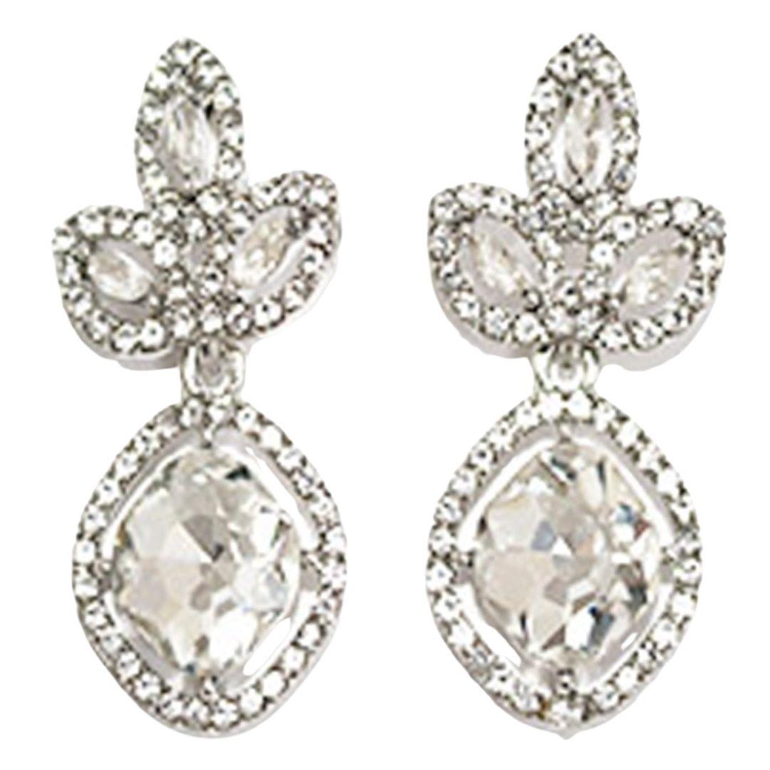 RHINESTONE CRYSTAL GEM RECTANGLE 2 DROP EARRING