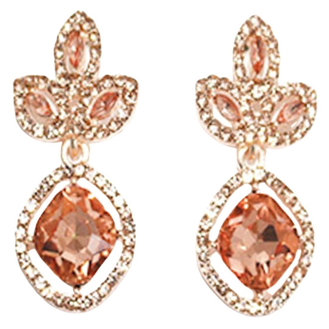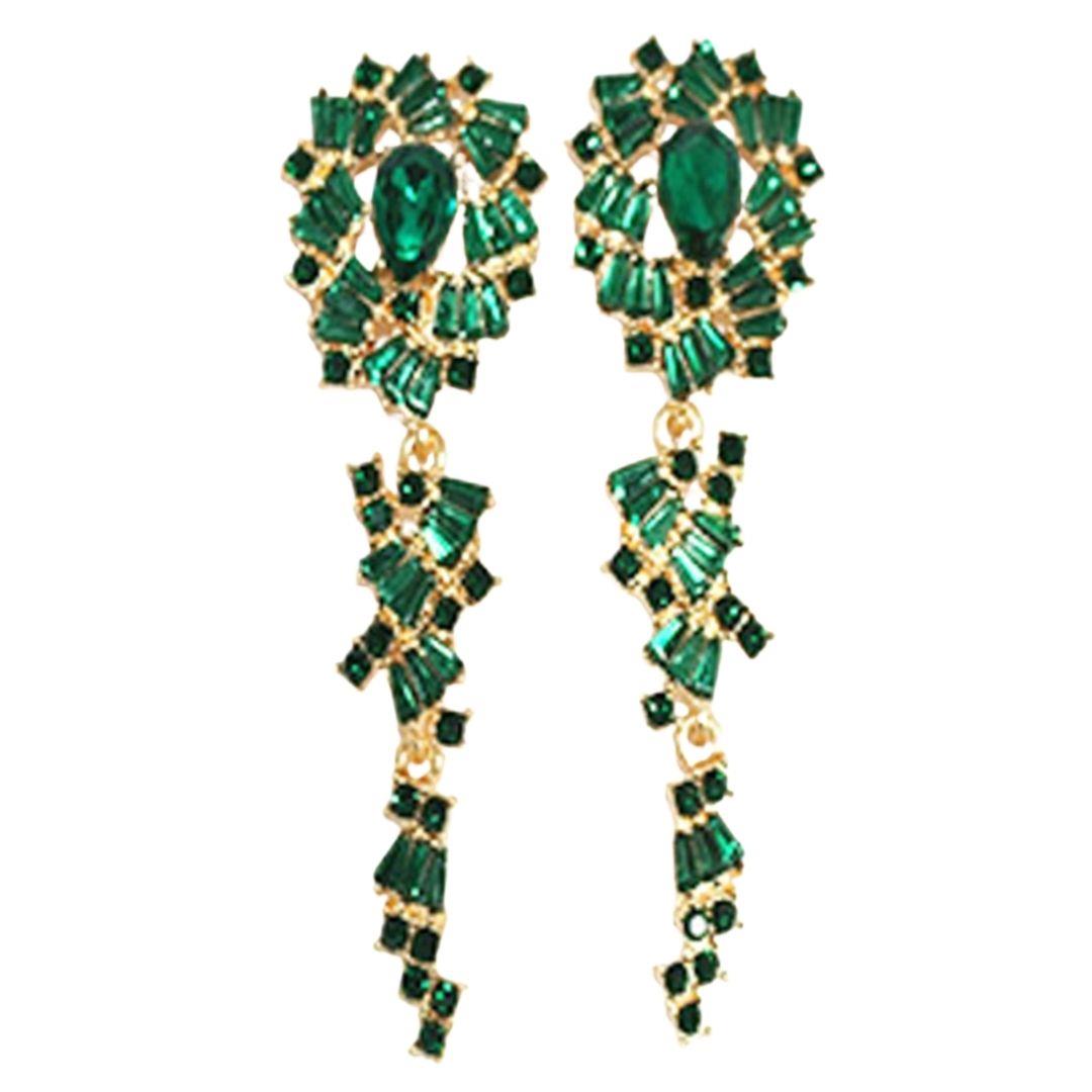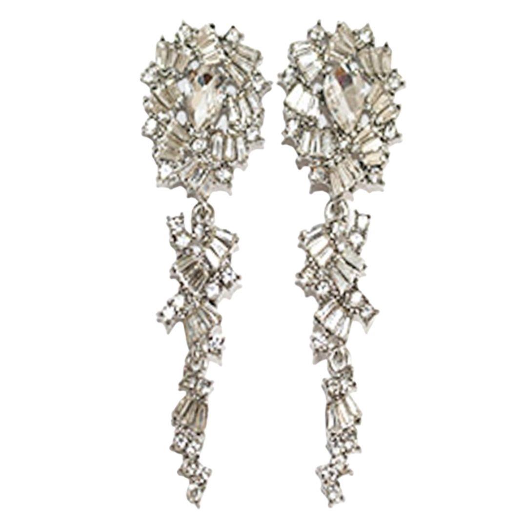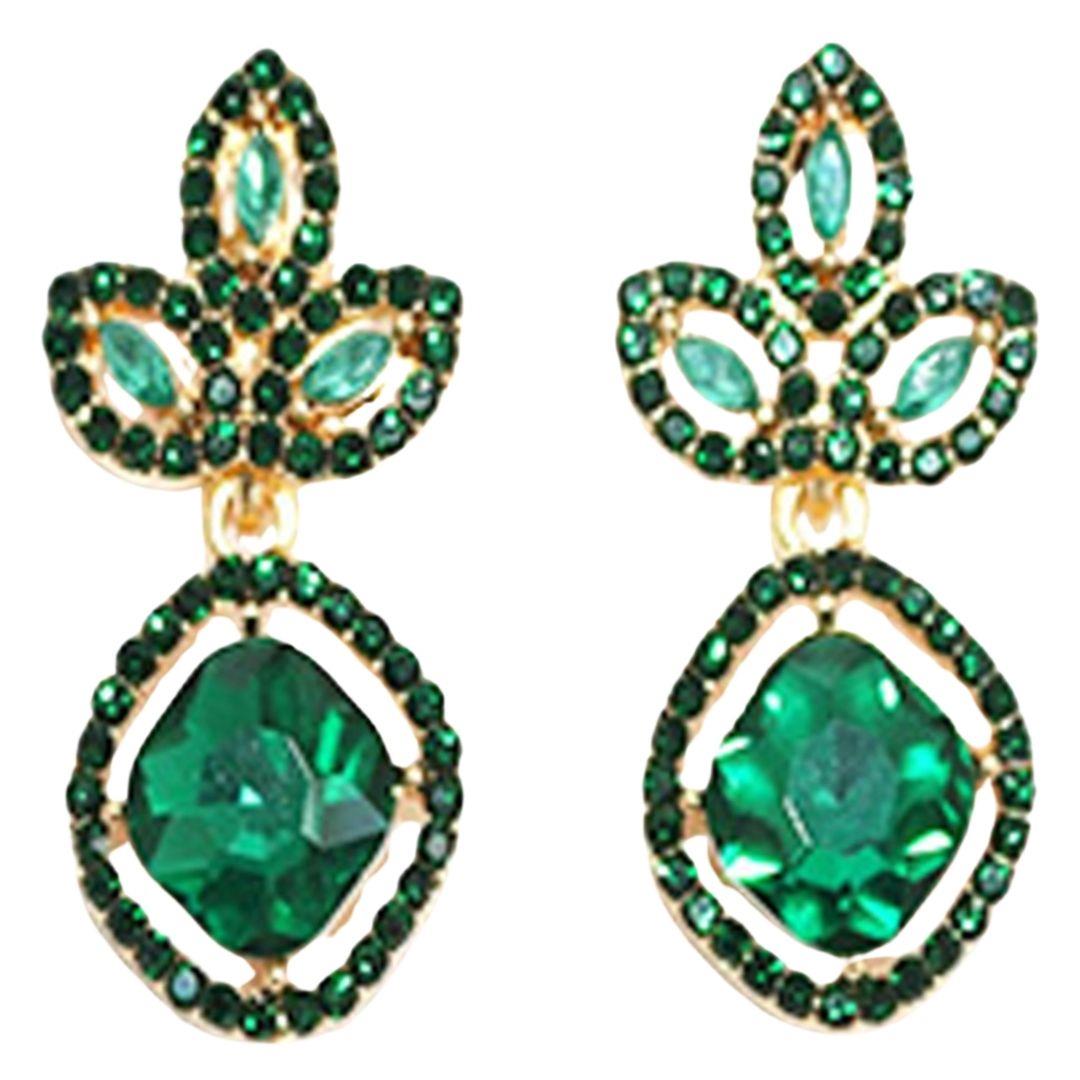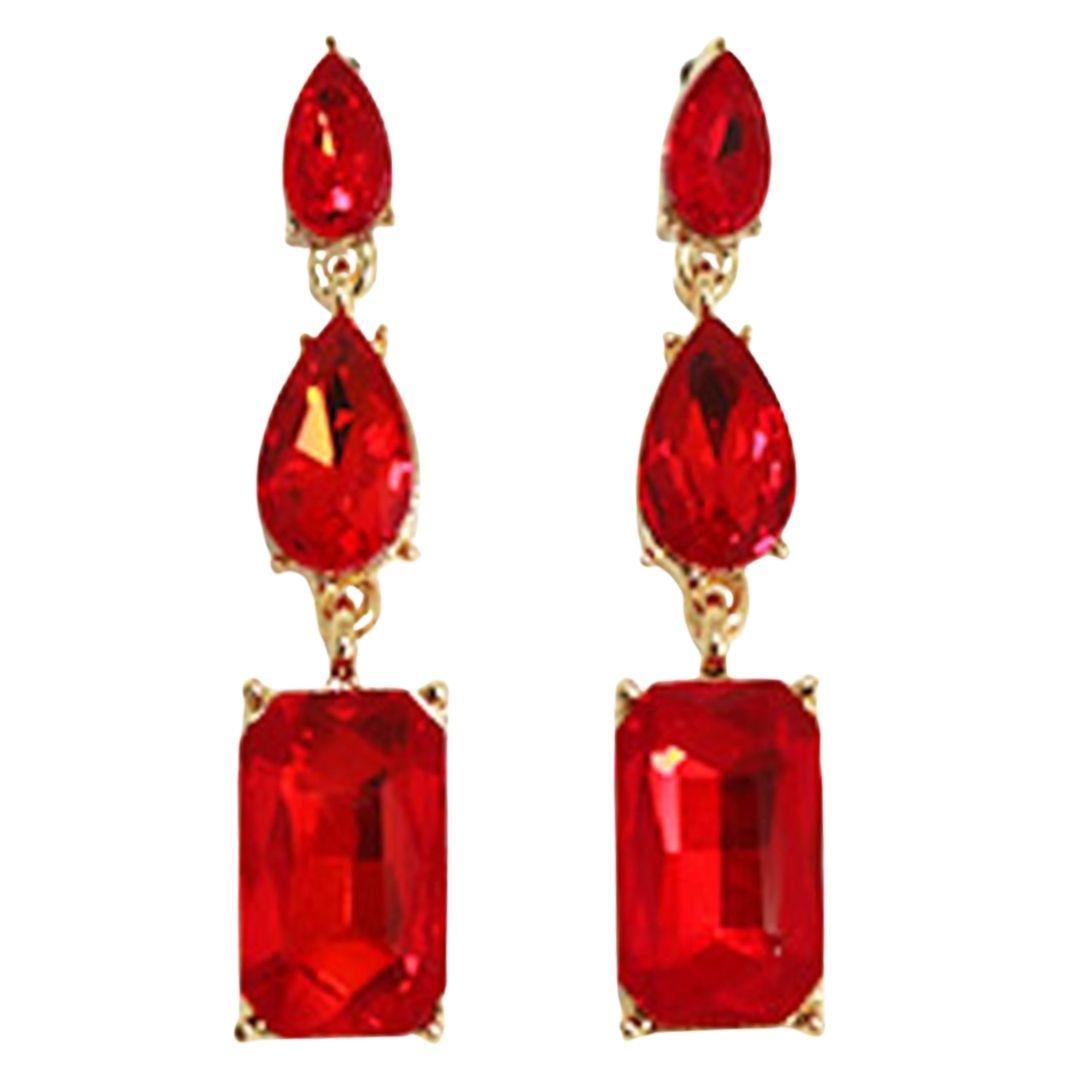 RHINESTONE CRYSTAL GEM RECTANGLE 2 DROP EARRING