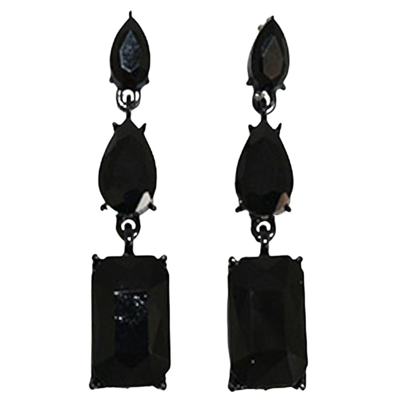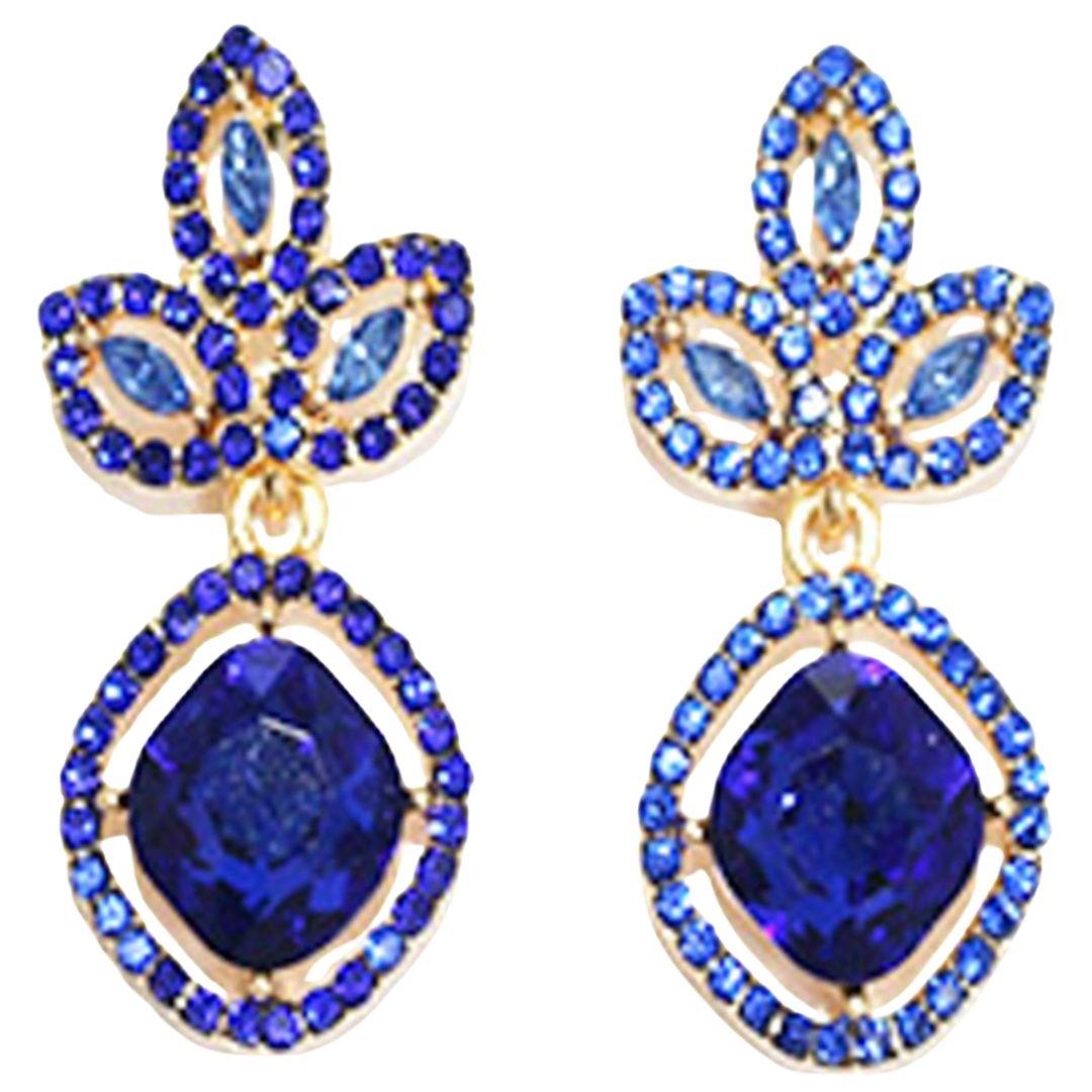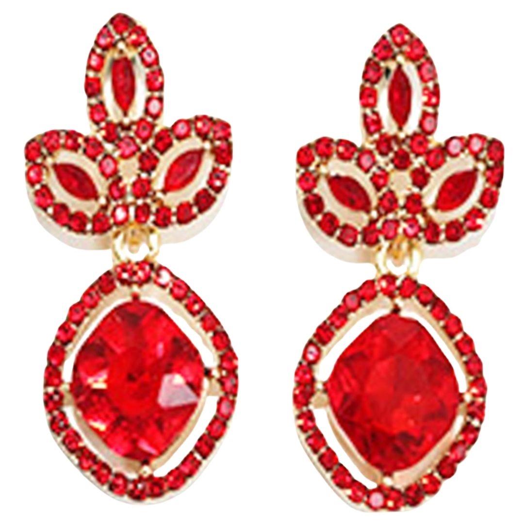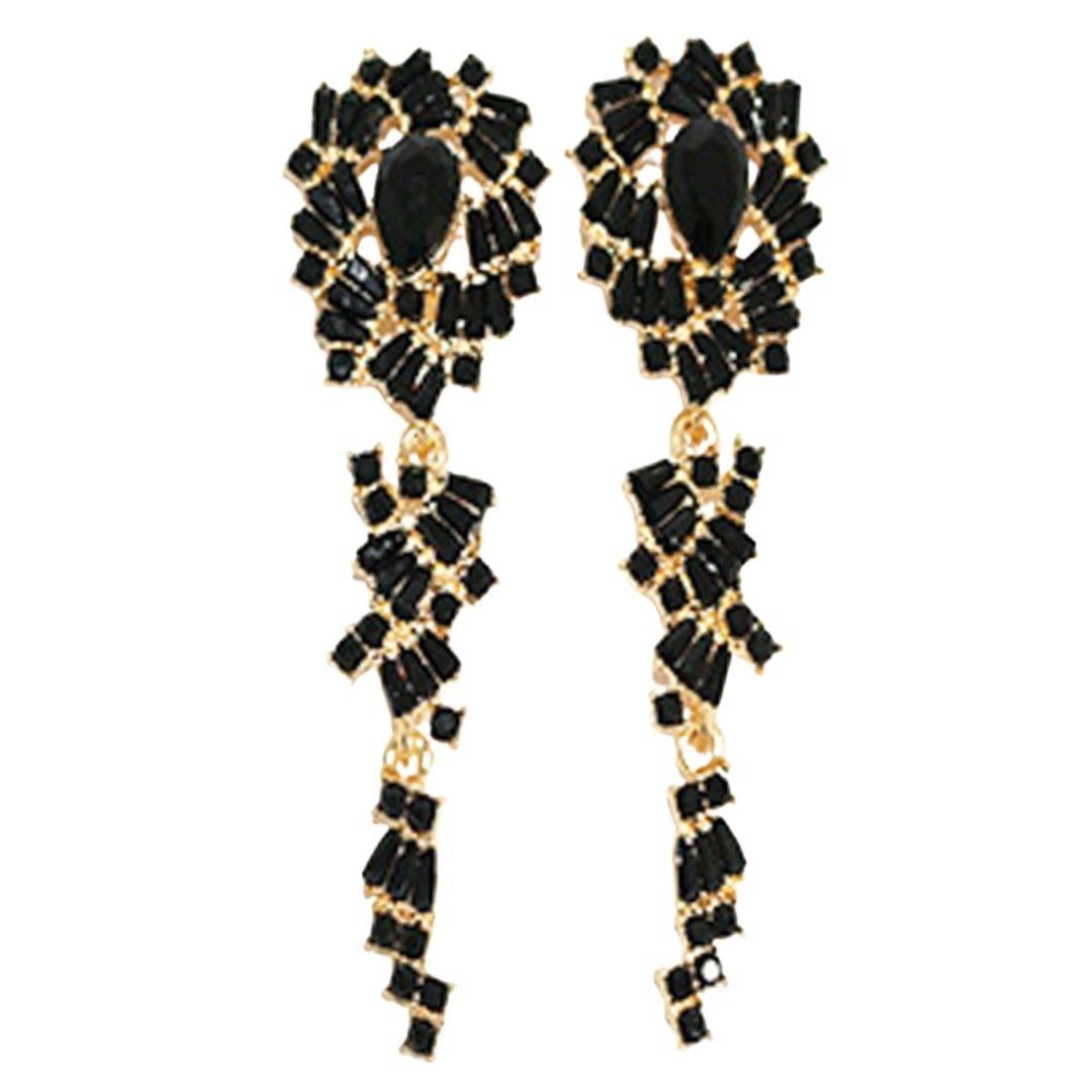 RHINESTONE CRYSTAL GEM RECTANGLE 2 DROP EARRING