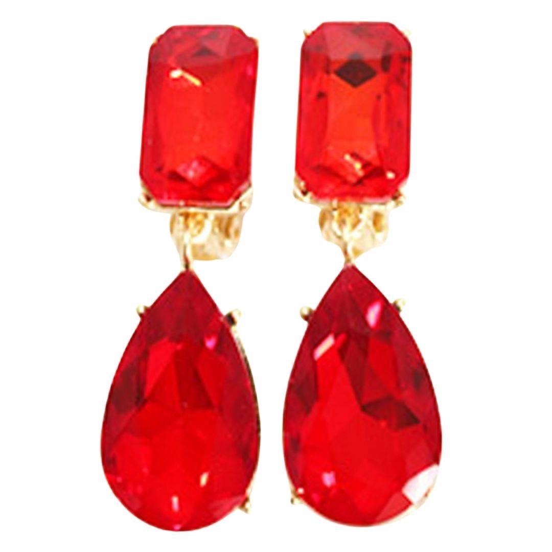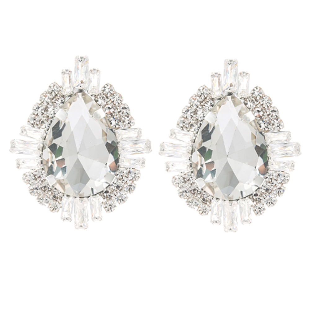 RHINESTONE TEARDROP CLIP EARRING