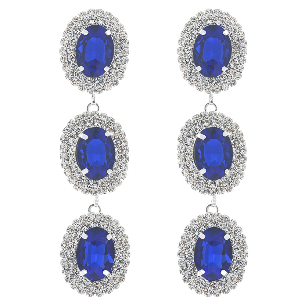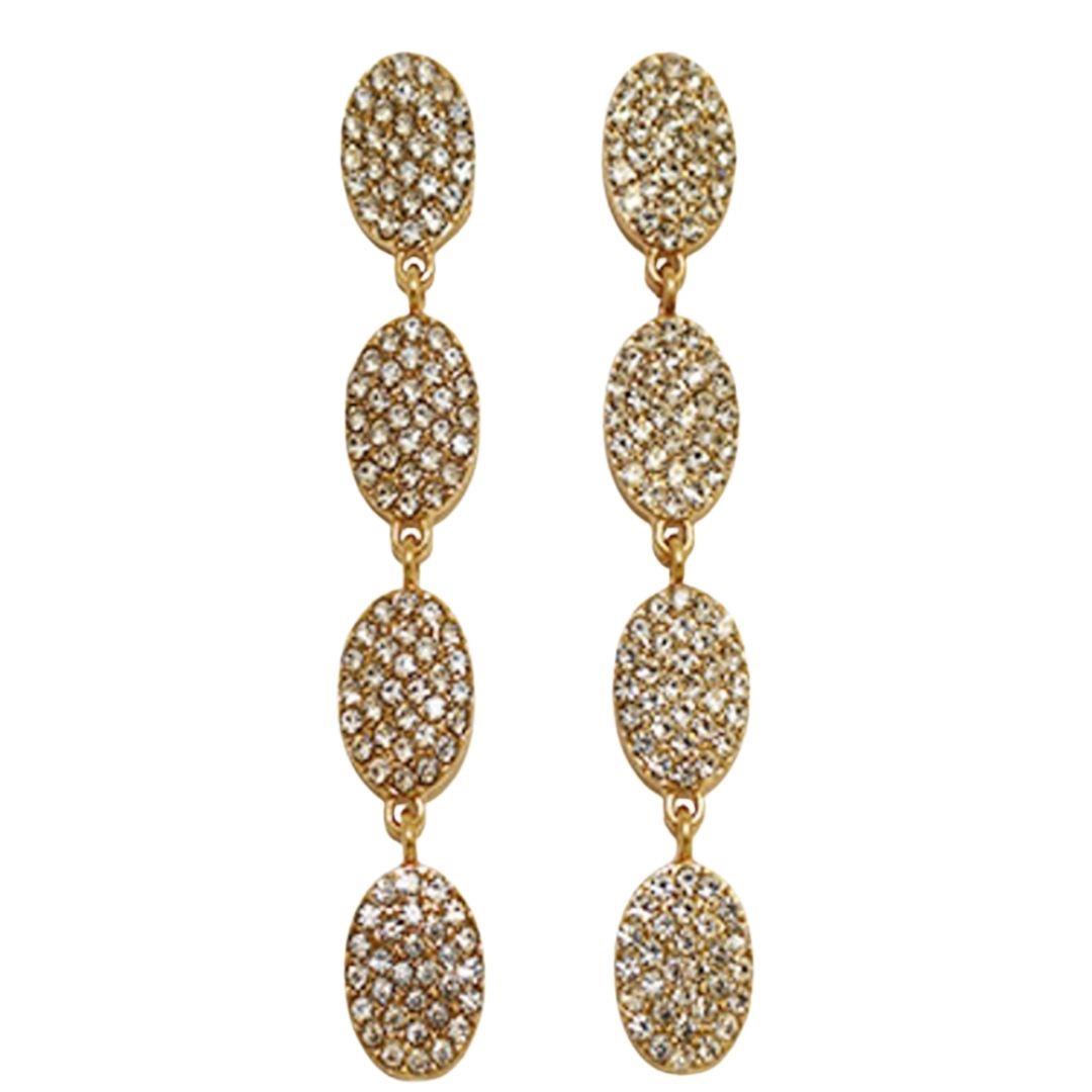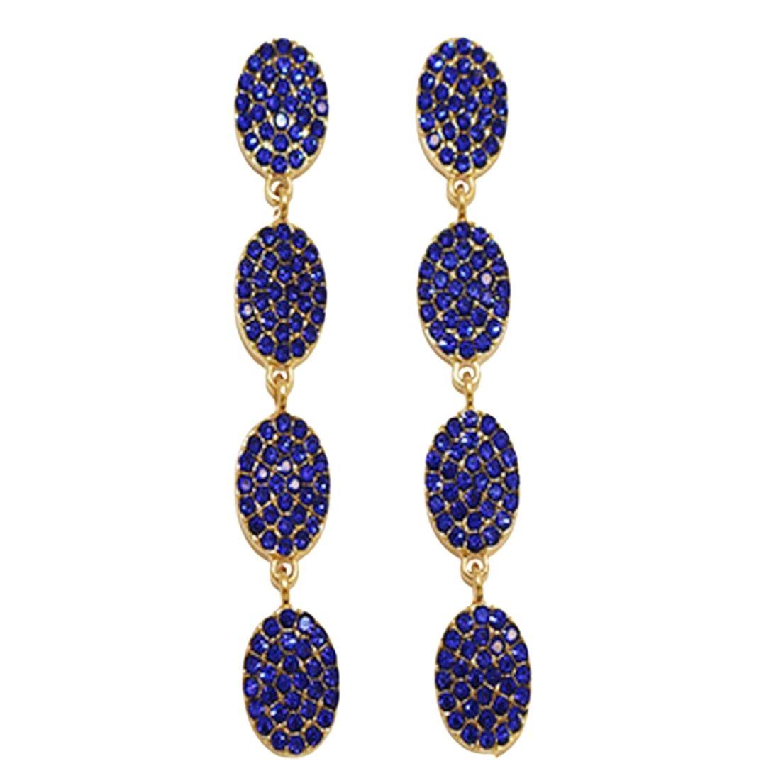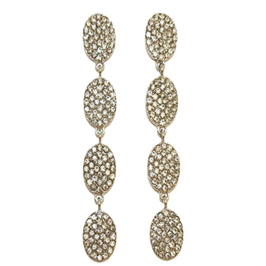 RHINESTONE OVAL 3 DROP EARRING