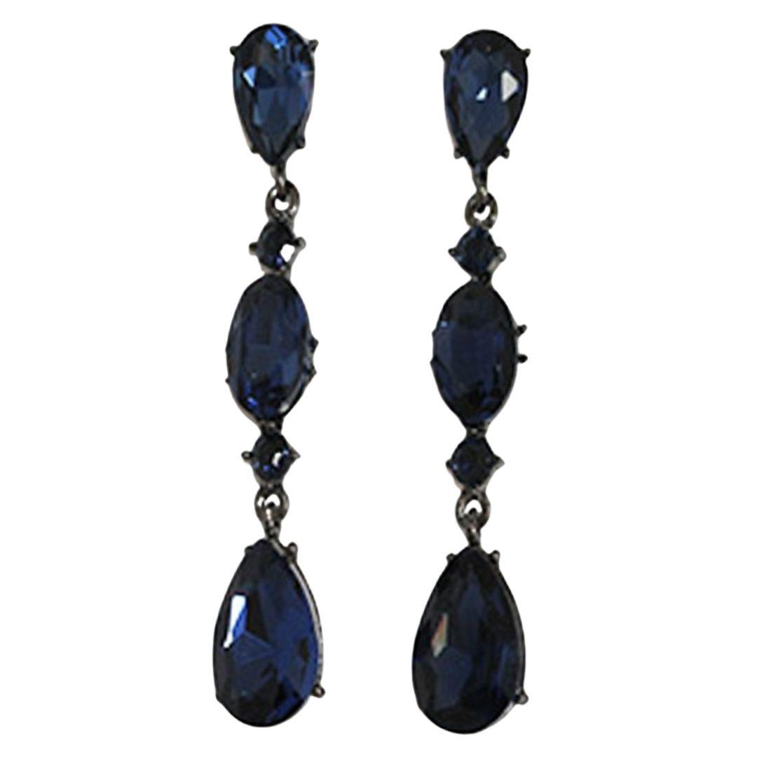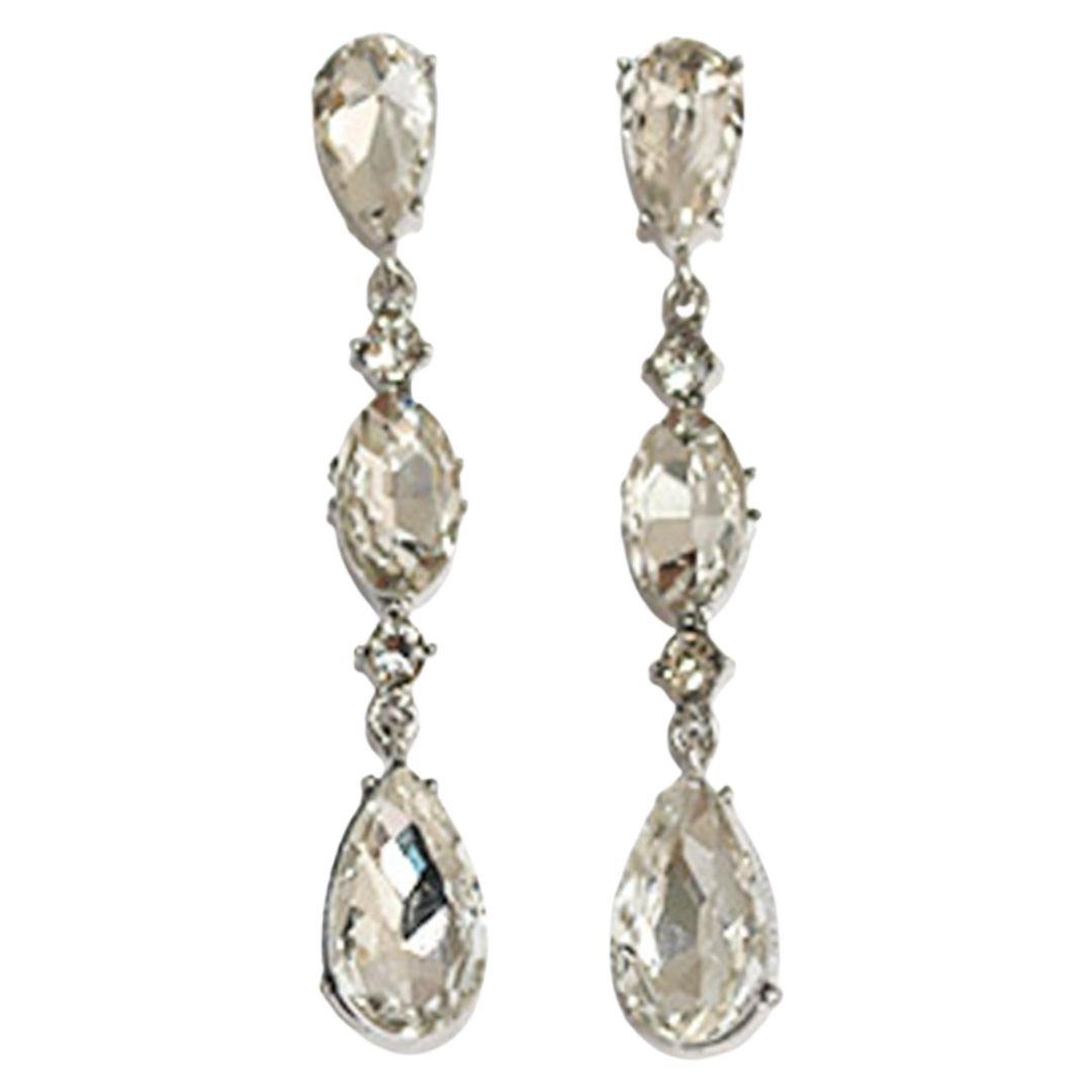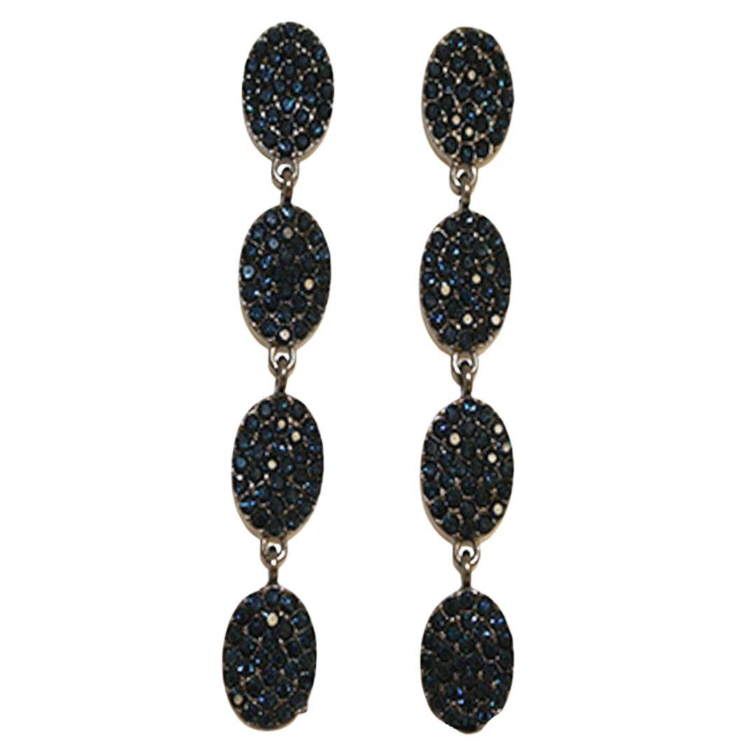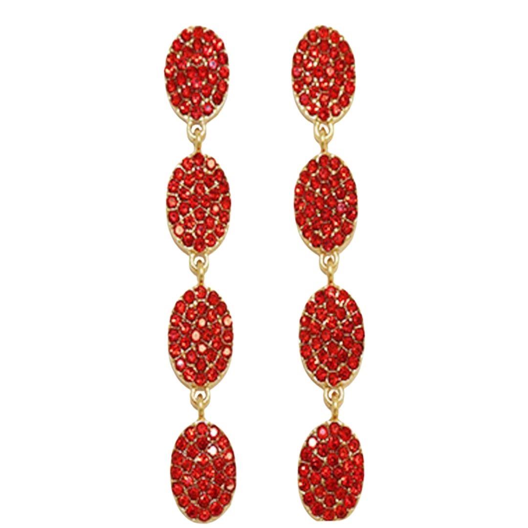 RHINESTONE OVAL 3 DROP EARRING