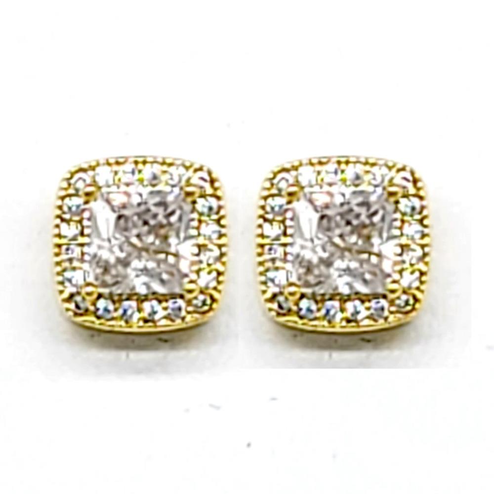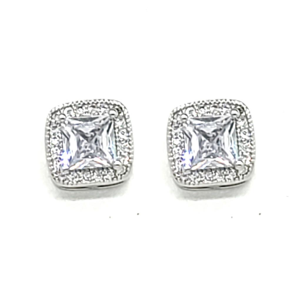CUBIC ZIRCONIA QUAD CUT SQUARE STUD EARRING