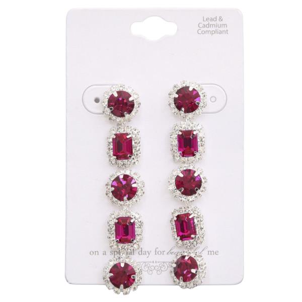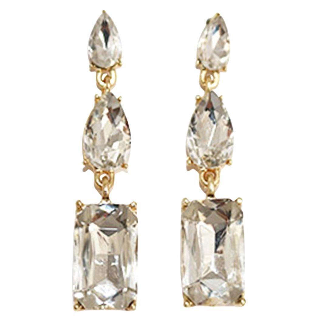 RHINESTONE RECTANGLE 3 DROP EARRING