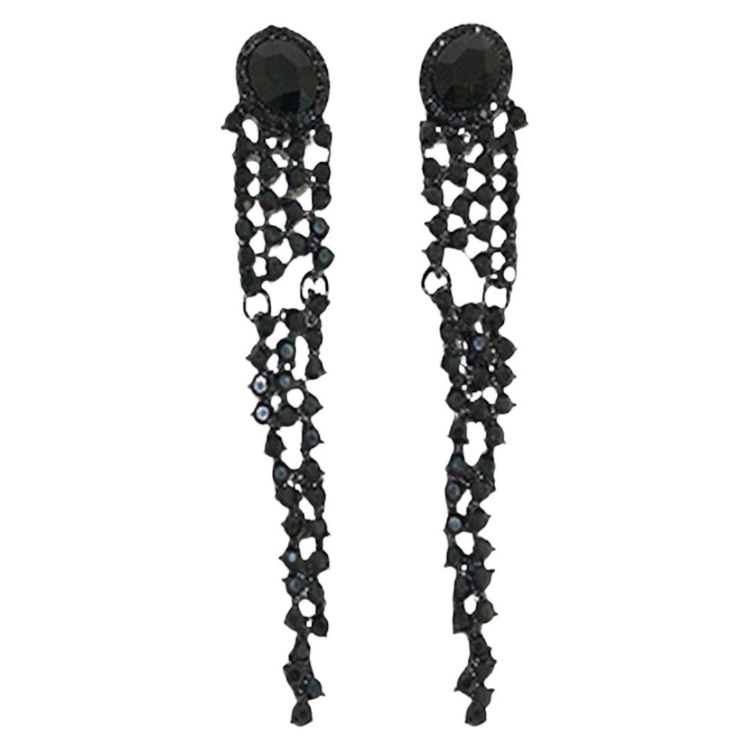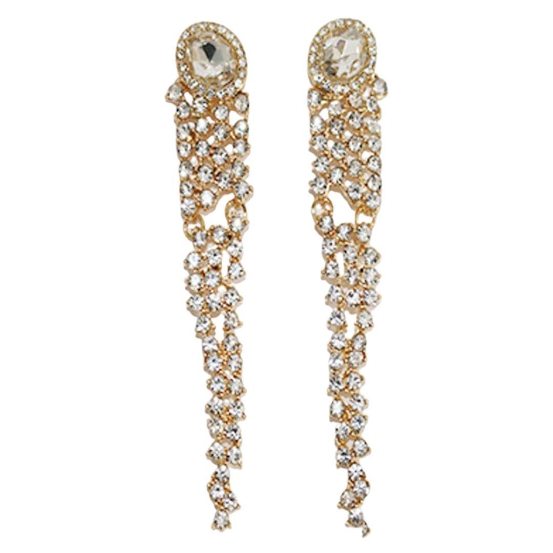 RHINESTONE TASSEL LONG EARRING