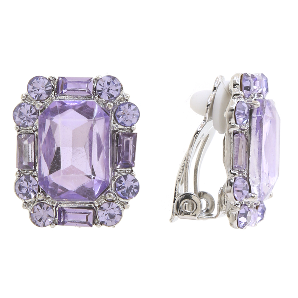 CRYSTAL STONE RECTANGLE EMERALD CUT CLIP ON DROP EARRING