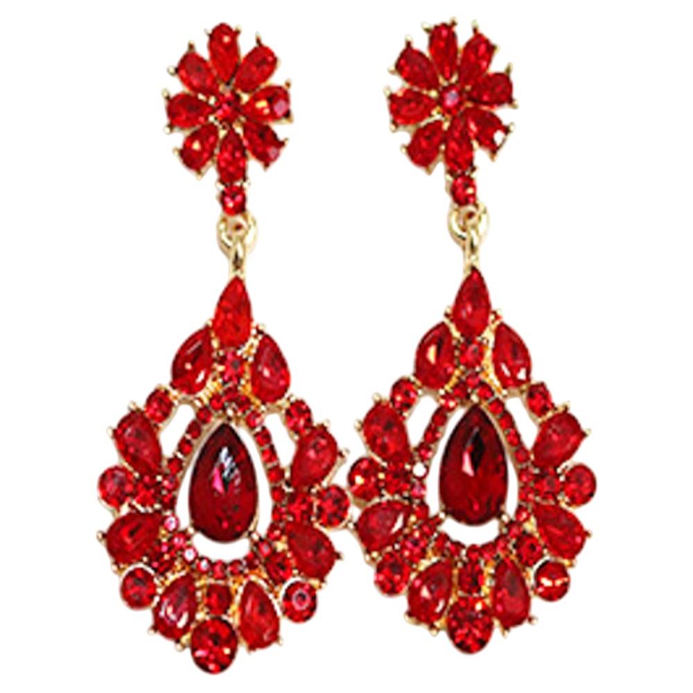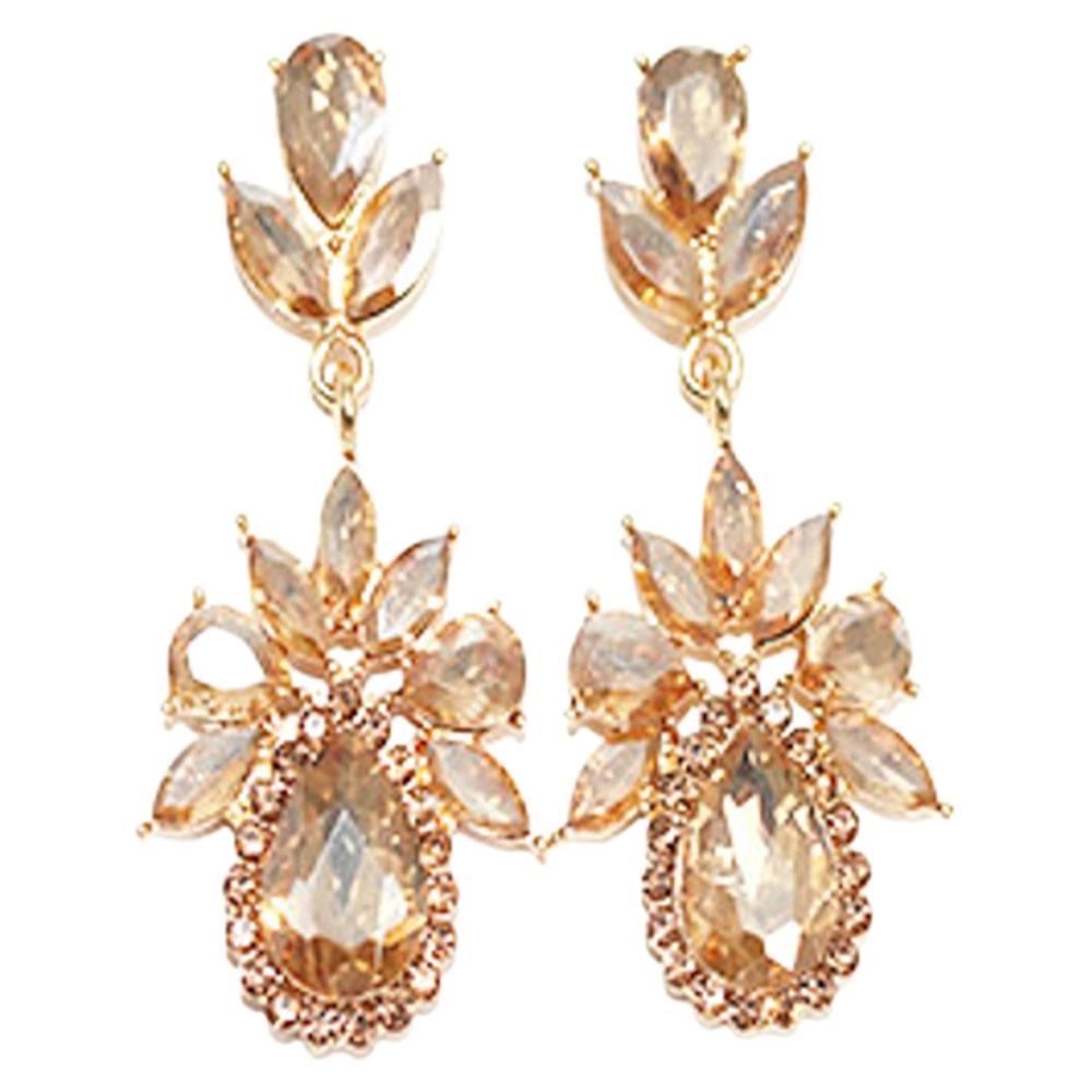 CRYSTAL STONE FLORAL TEARDROP DROP EARRING