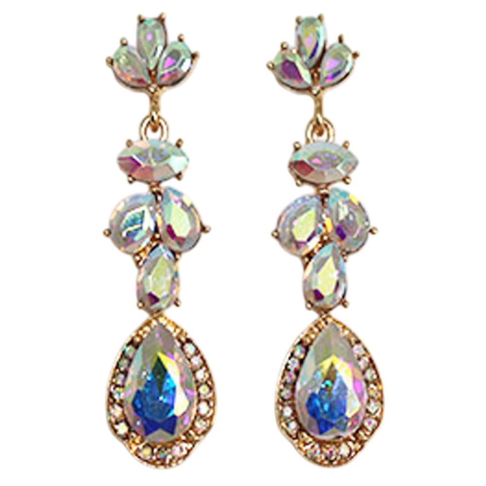 CRYSTAL STONE TEARDROP CLUSTER DROP EARRING