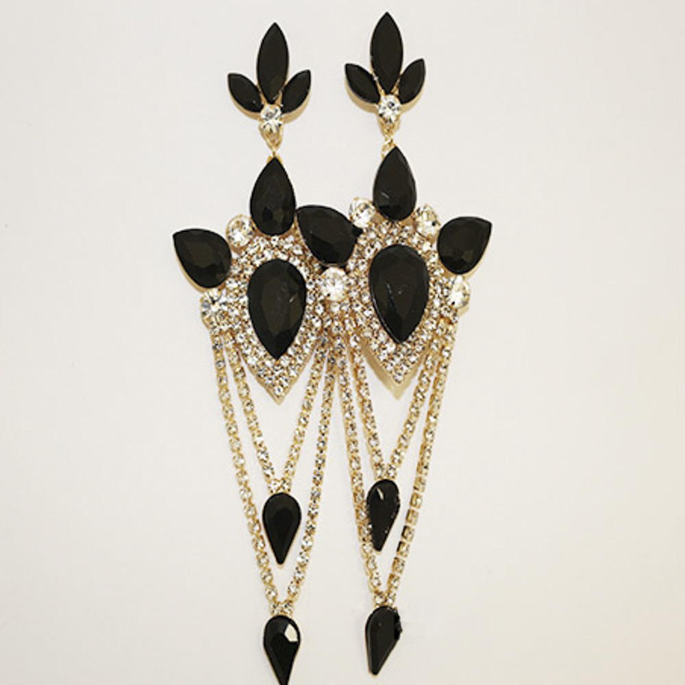 RHINESTONE 2 LINE PEAR SHAPE 30MM EARRING