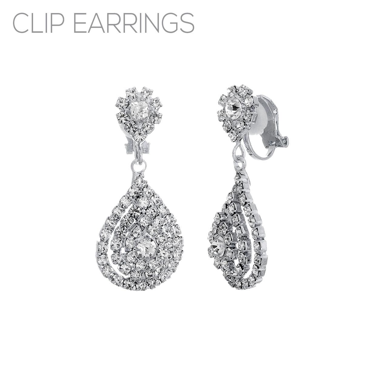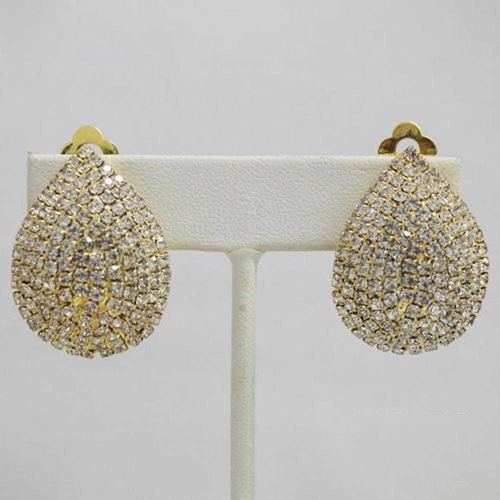 FASHION CRYSTAL TEARDROP CLIP EARRING