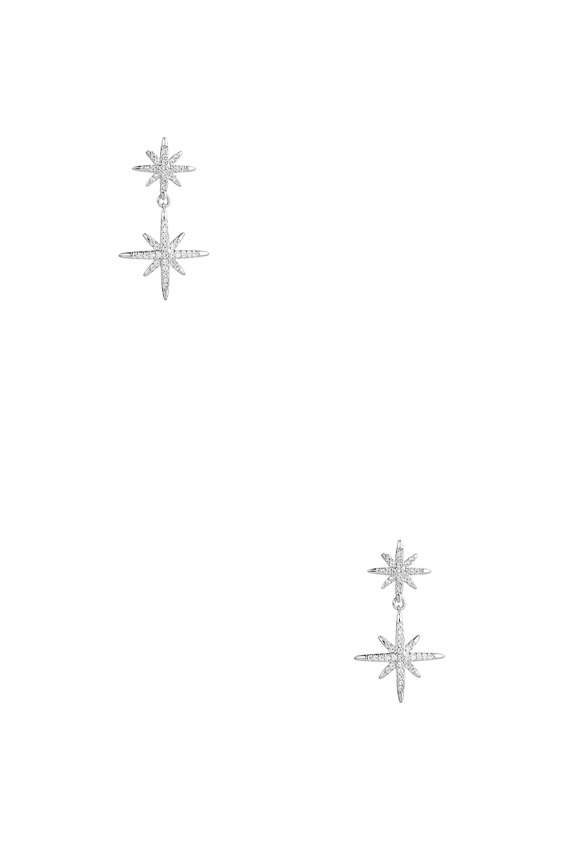FASHION RHINESTONE METAL DOUBLE STARBURST SHAPE EARRING