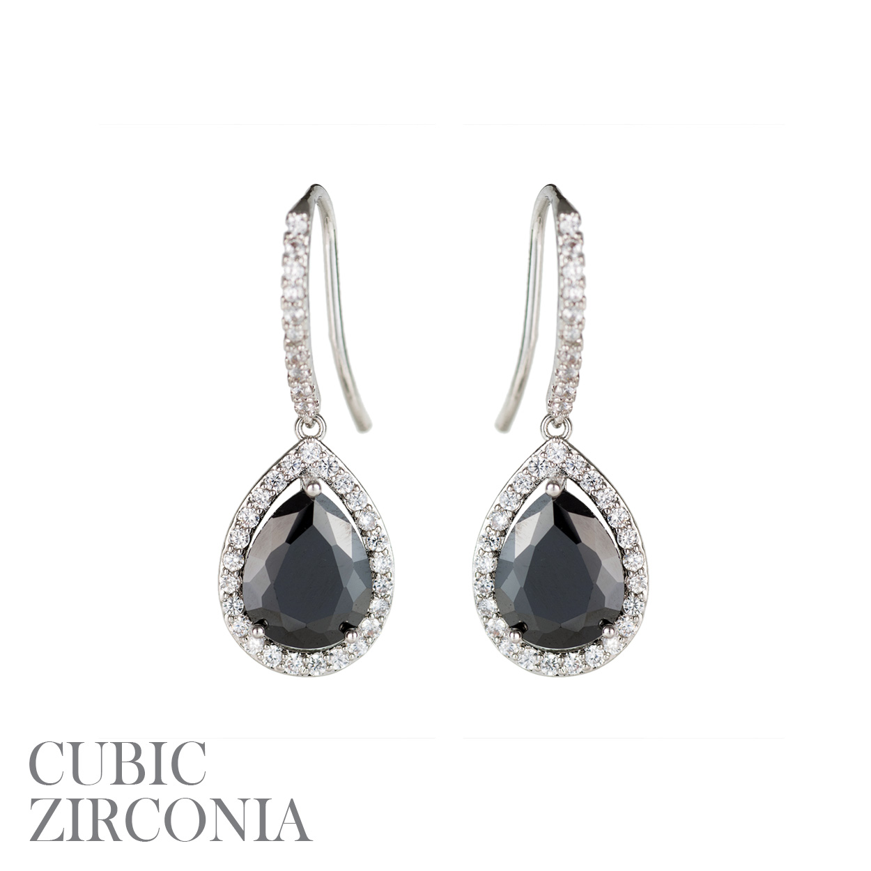 CUBIC ZIRCONIA ROUND TOP TEARDROP EARRING