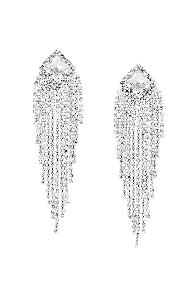 RHOMBUS RHINESTONE POST FRINGE EARRING