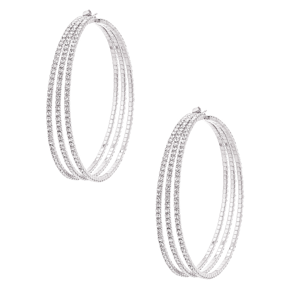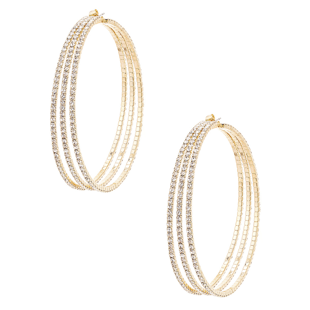 RHINESTONE 3 LAYER HOOP EARRING
