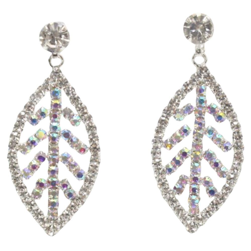 RHINESTONE LEAF DANGLE EARRING