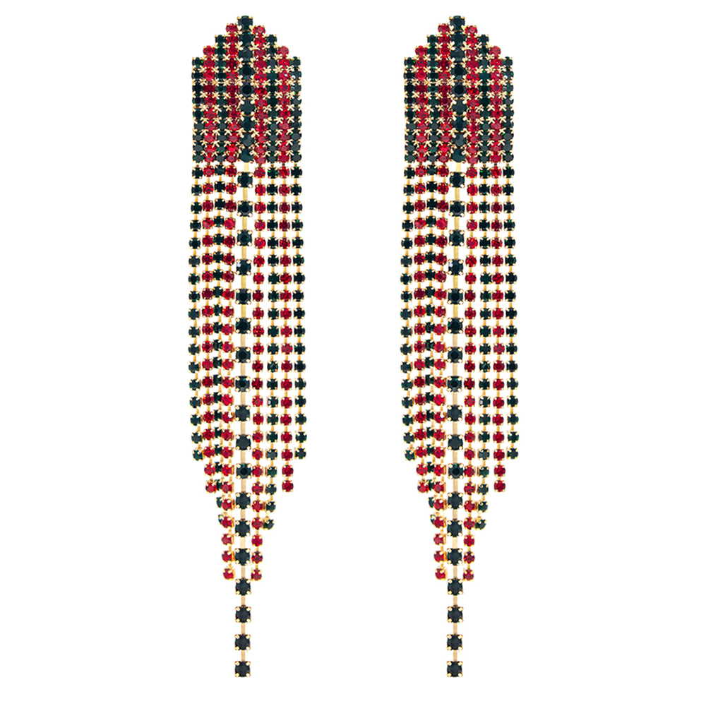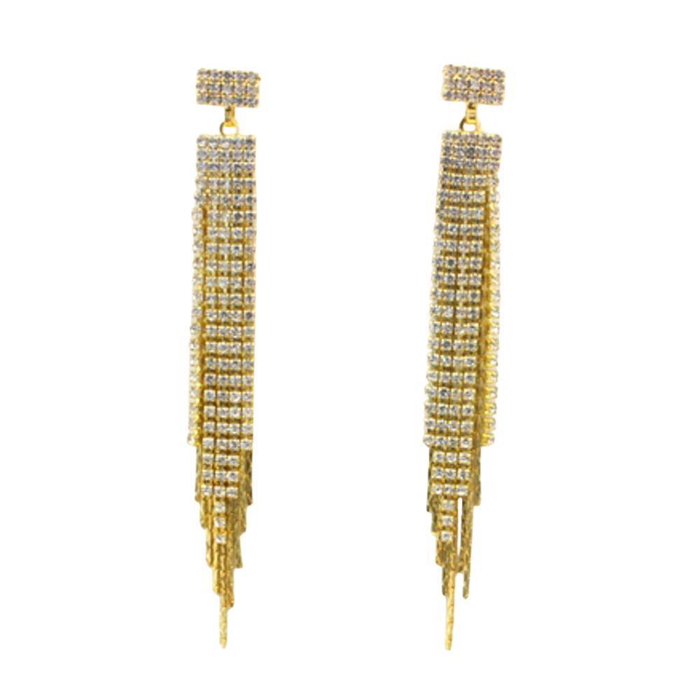 RHINESTONE LAYER DESIGN FRINGE EARRING