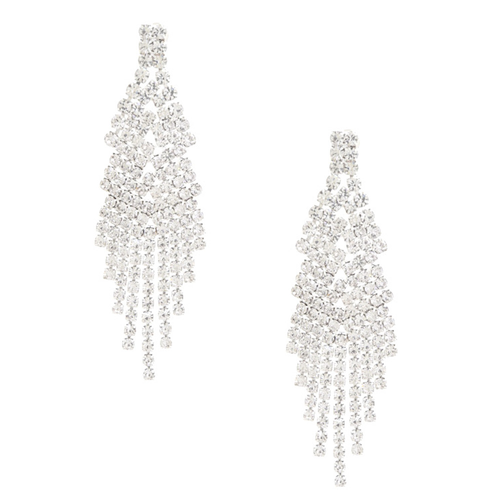 RHINESTONE MULTI LINE FRINGE POST EARRING