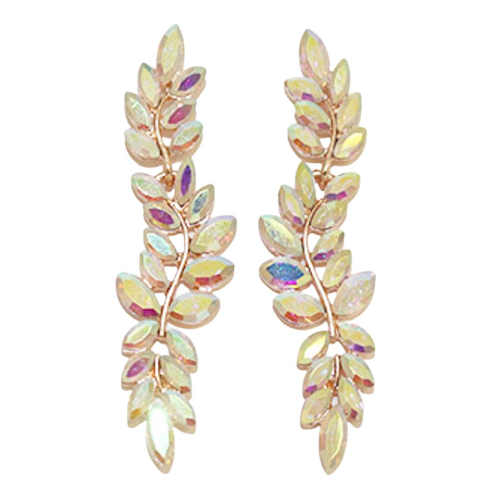 RHINESTONE LEAF CLUSTER DANGLE EARRING