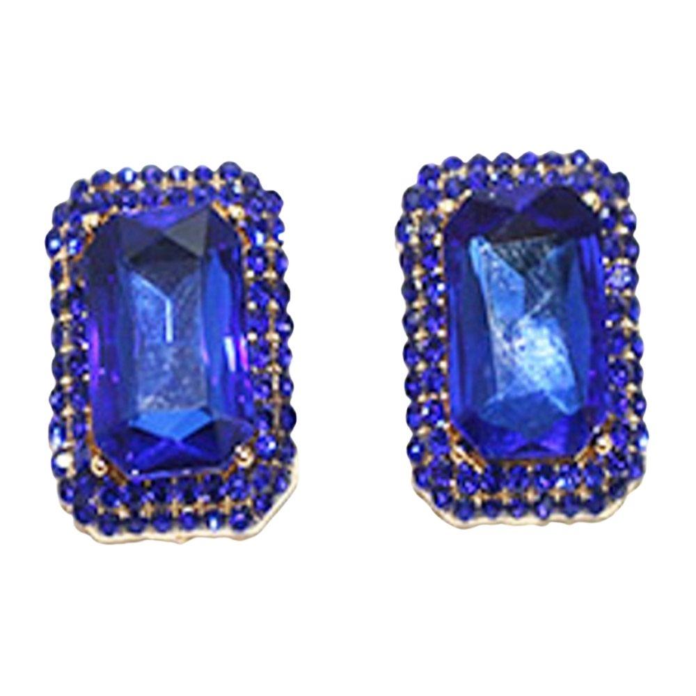 RHINESTONE HALO EMERALD CUT CRYSTAL GLASS STUD EARRING