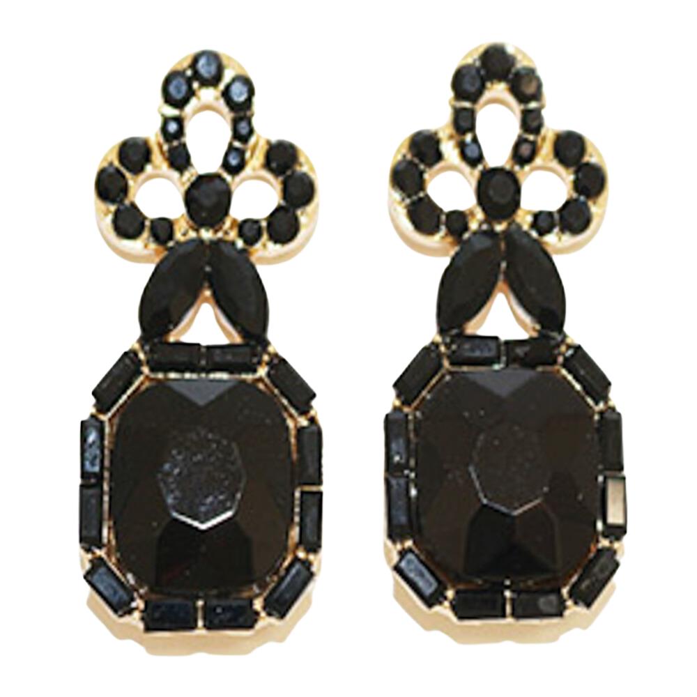 RHINESTONE 2 RHOMBUS DANGLE EARRING