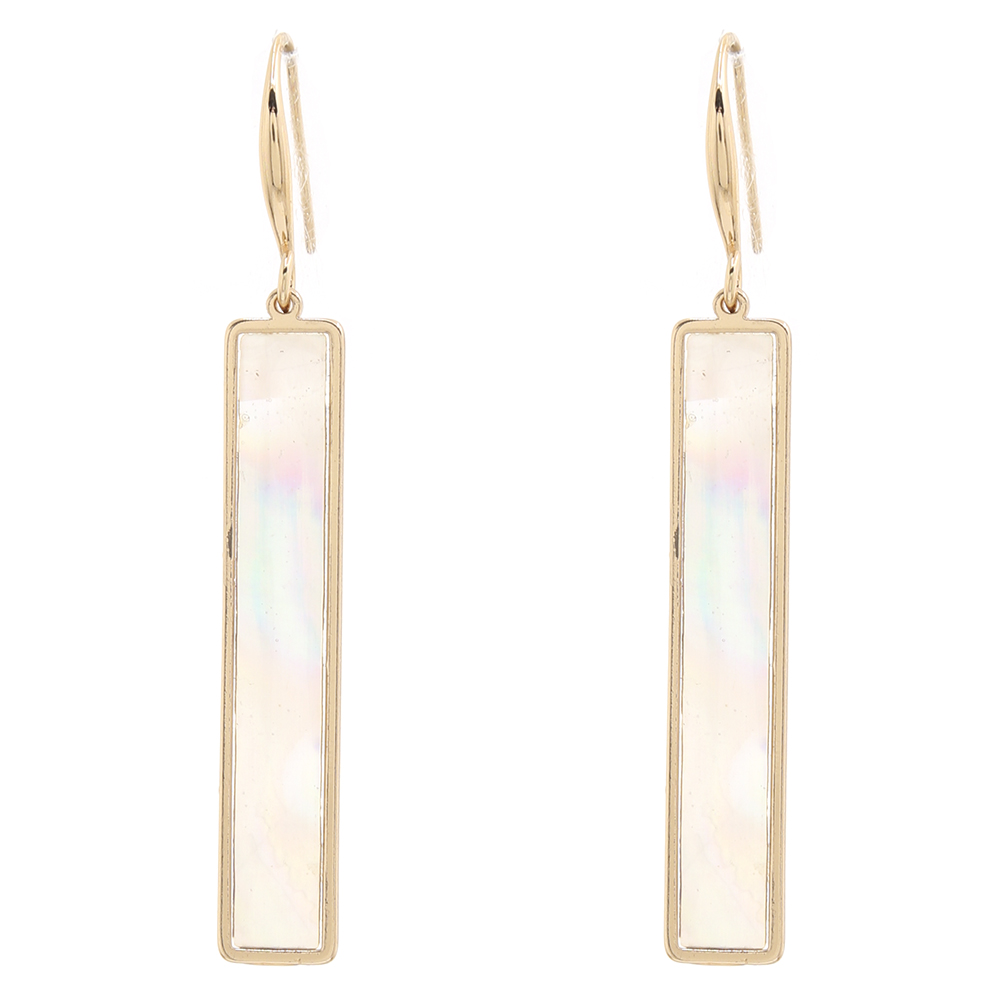RECTANGULAR MOTHER OF PEARL DESIGNER FISH HOOK EARRINGS