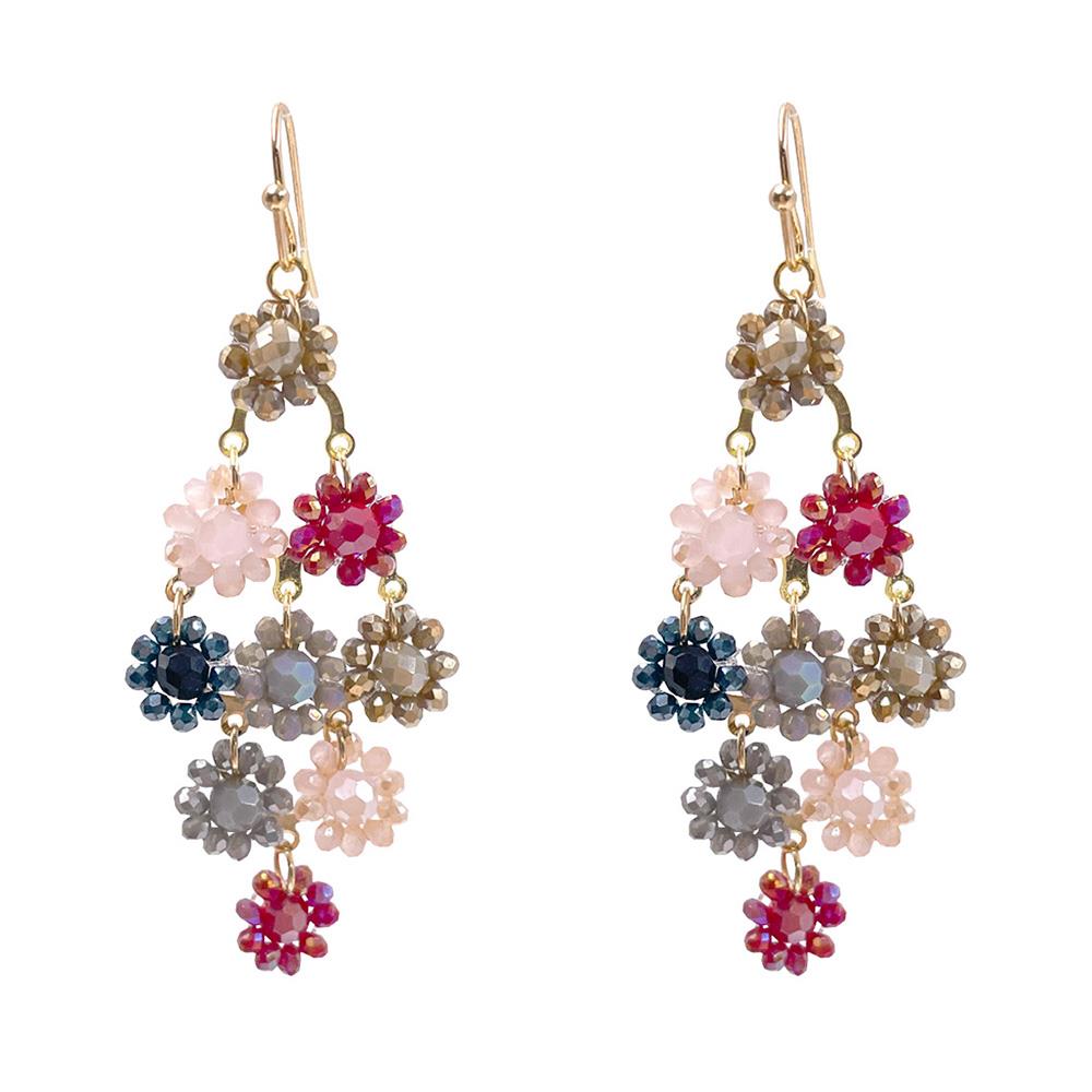 BEADED MULTI-LAYER TASSEL DROP HOOK EARRINGS